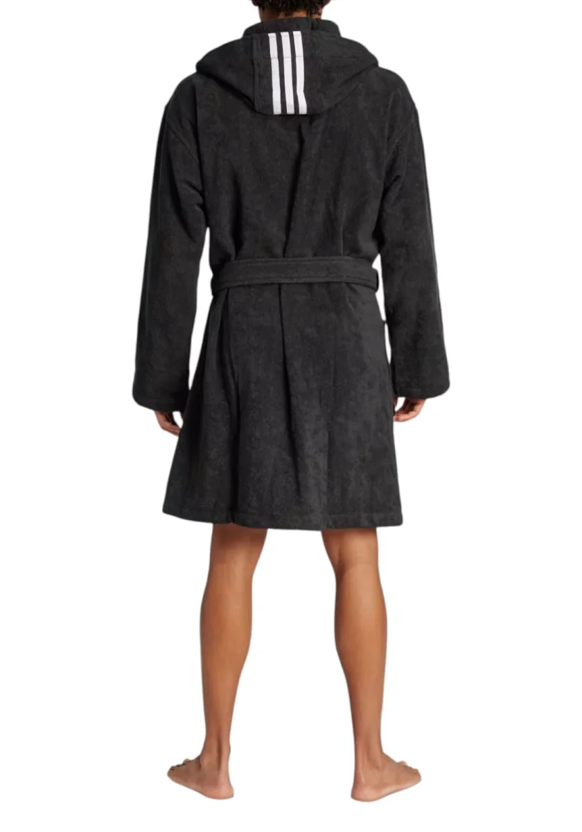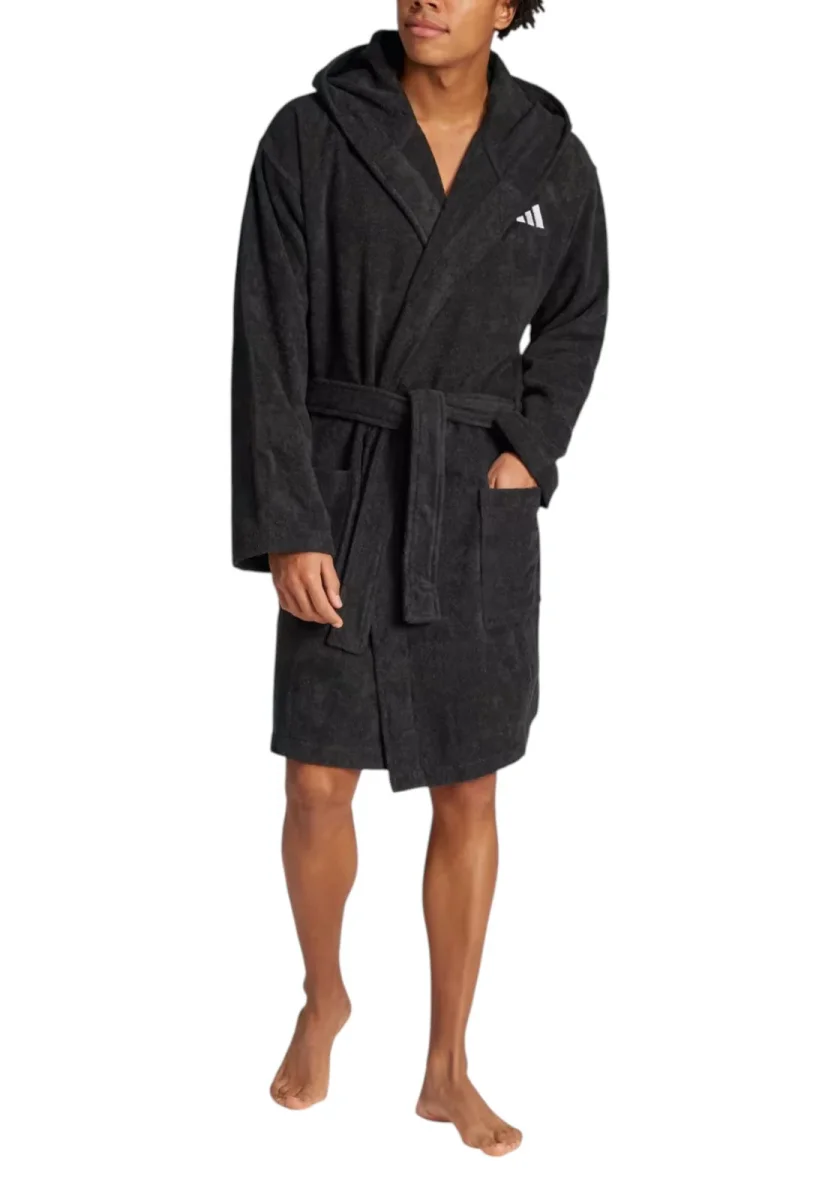 Prima e dopo la sessione di nuoto, avvolgiti nel comfort di questo accappatoio adidas con cappuccio. Realizzato in cotone leggero e assorbente, è perfetto da indossare quando esci dalla piscina, dalla vasca o dalla doccia. La cintura regolabile ti permette di trovare la vestibilità perfetta per te.