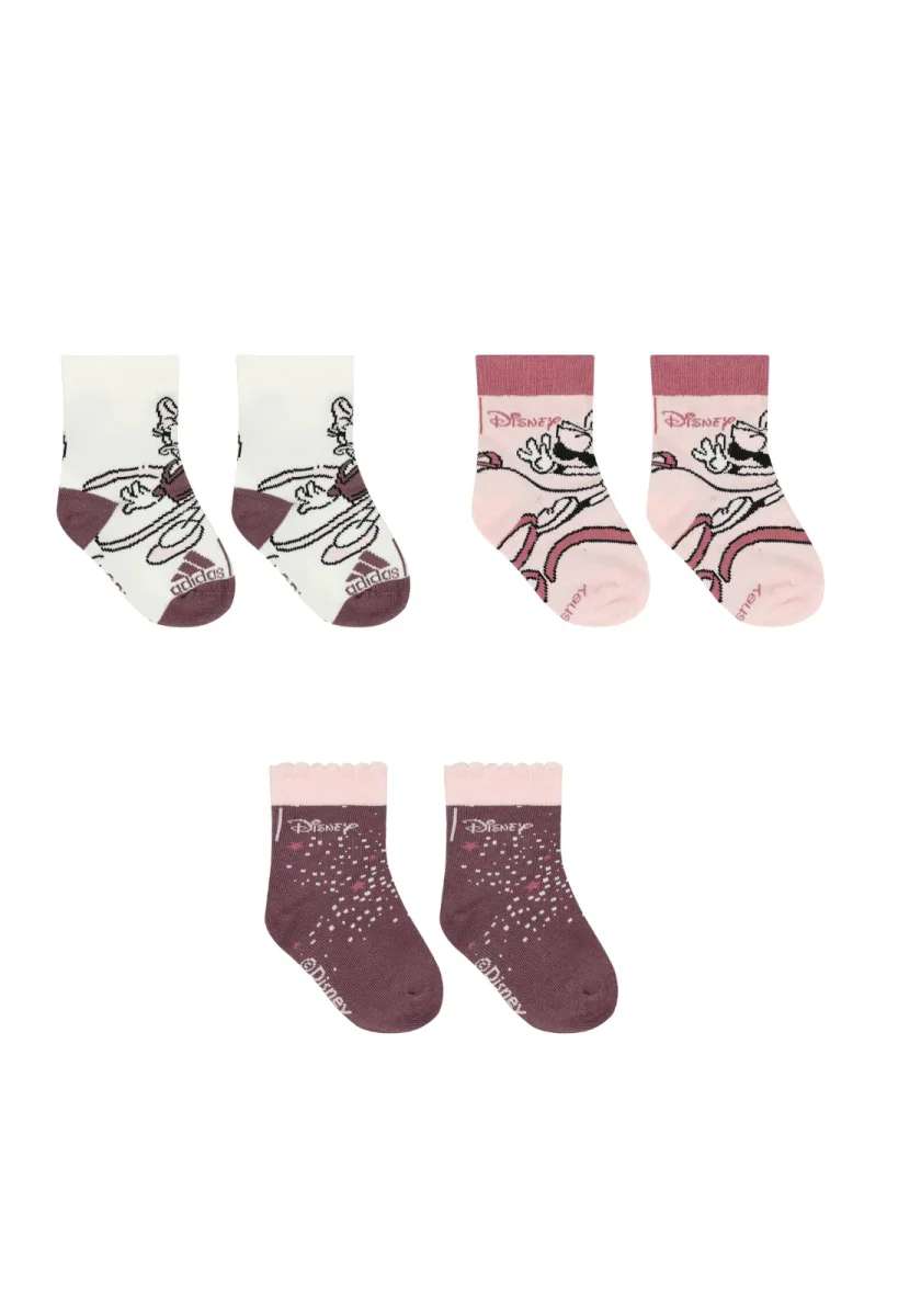 Confezione da tre calzettoni rosa e bianchi da bambina con logo di adidas.