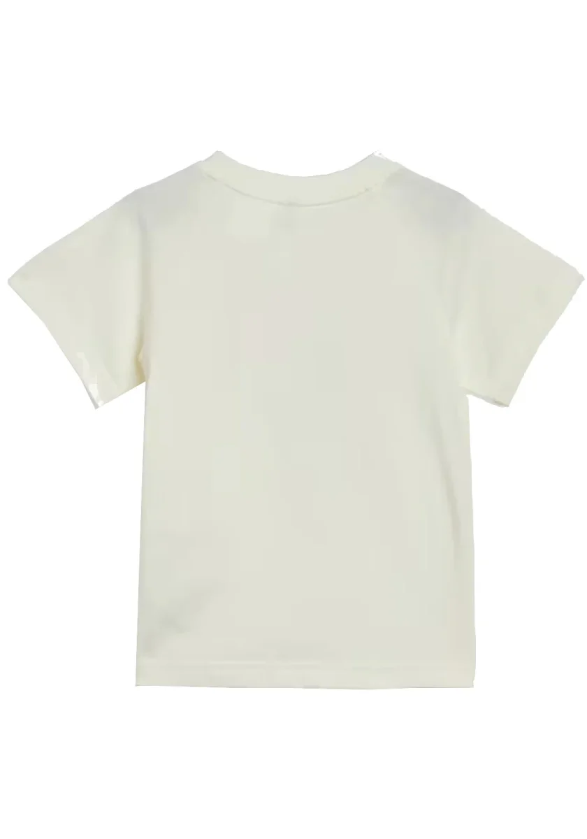 Il bavaglino, la T-shirt e gli short sono realizzati in jersey di cotone per offrire una morbidezza eccezionale a contatto con la pelle.