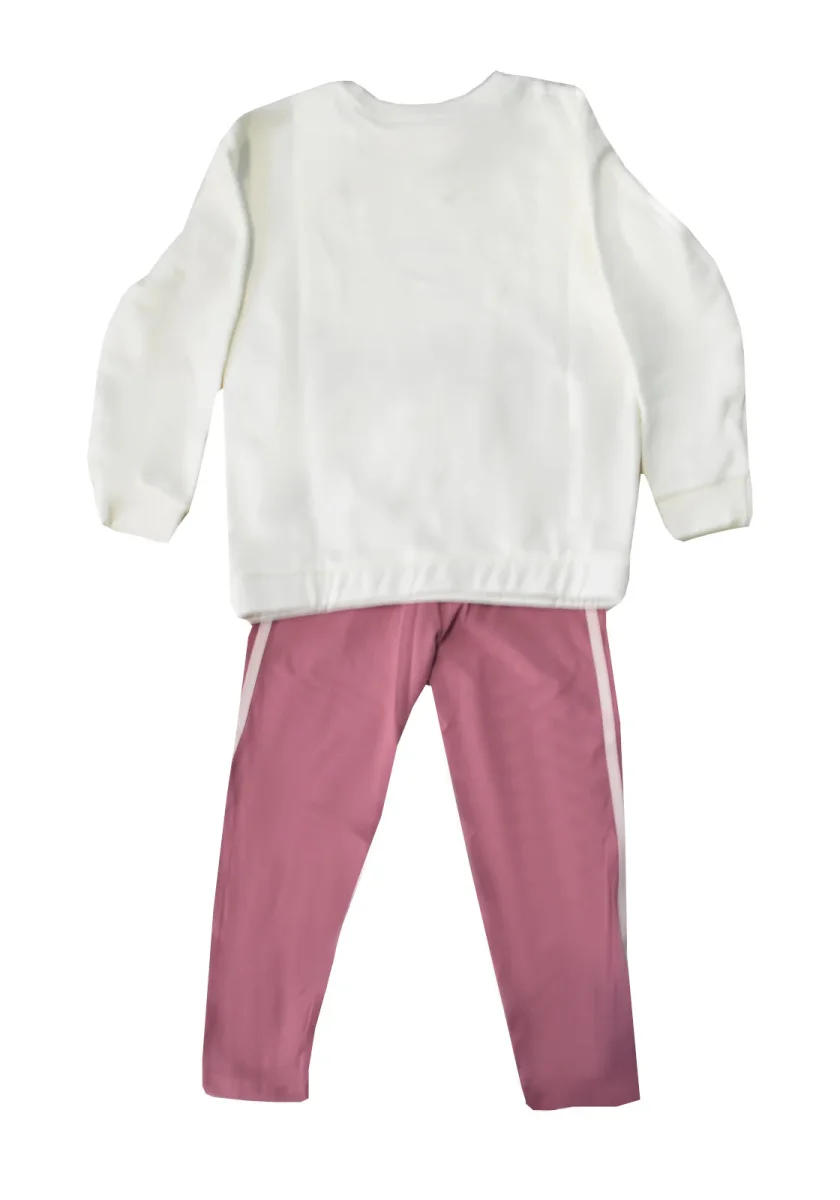 Tuta bimba Adidas con logo stampato sul petto del capo, colorazione Bianco/Rosa.