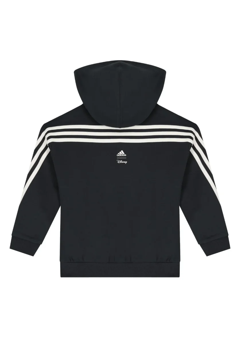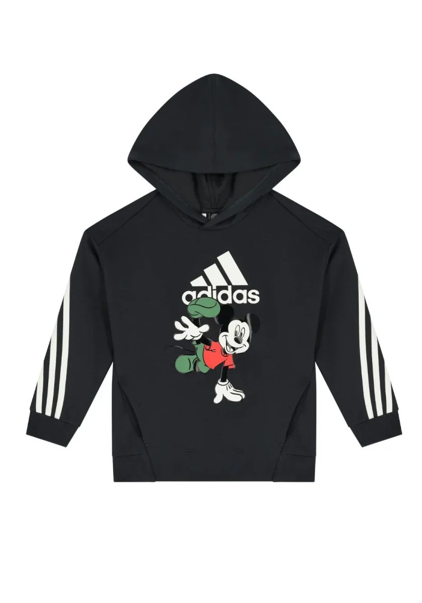 Ha le tre strisce firmate dal marchio sulle maniche e sulla schiena, sul collo della felpa con cappuccio e sulla tasca frontale.