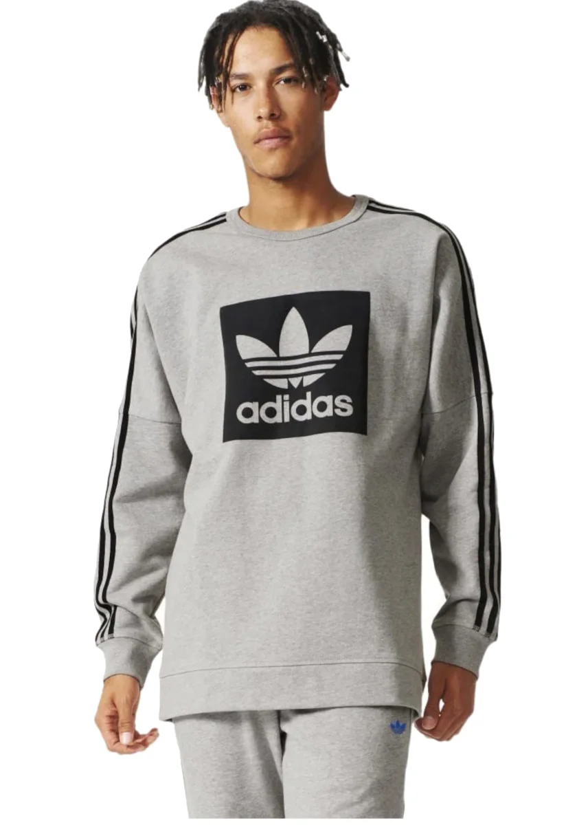 Felpa con girocollo da uomo, in tessuto garzato con logo ADIDAS ORIGINALS sul petto.
