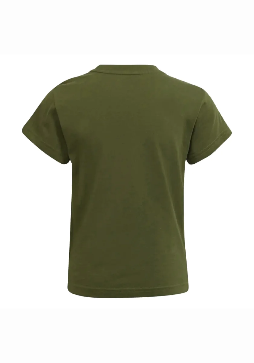 T-shirt bimbo verde militare a manica corta con maxi logo a contrasto bianco sul petto.
