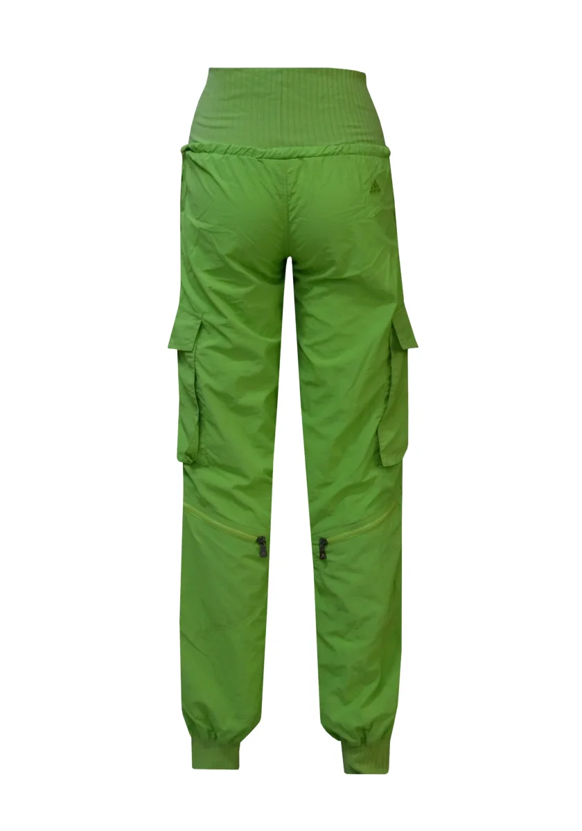 Pantaloni polsino in colorazione verde con due tasche comode e grandi ai lati delle gambe del modello.