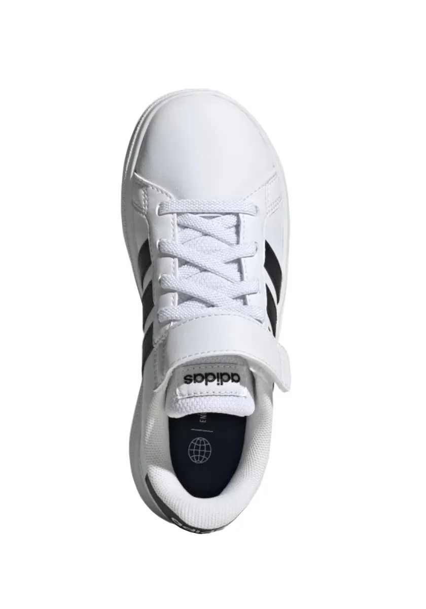 Queste scarpe adidas Grand Court faranno la felicità di bambini e bambine, grazie alla suola robusta e flessibile in gomma preformata che garantisce un supporto ottimale a ogni passo.