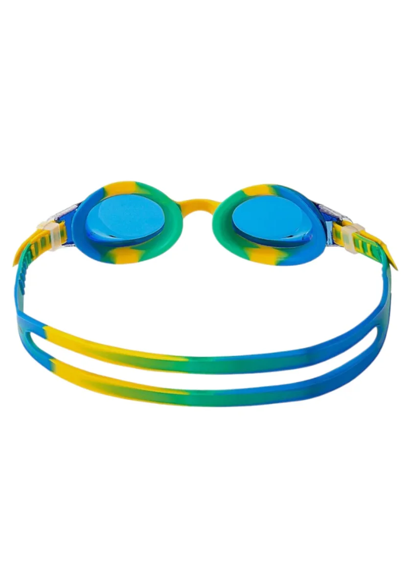 Occhialini da nuoto dal design colorato con combinazione di blu, verde e giallo. Dotati di lenti antiappannamento e cinturino regolabile per un comfort ottimale. Ideali per nuotatori di tutti i livelli.