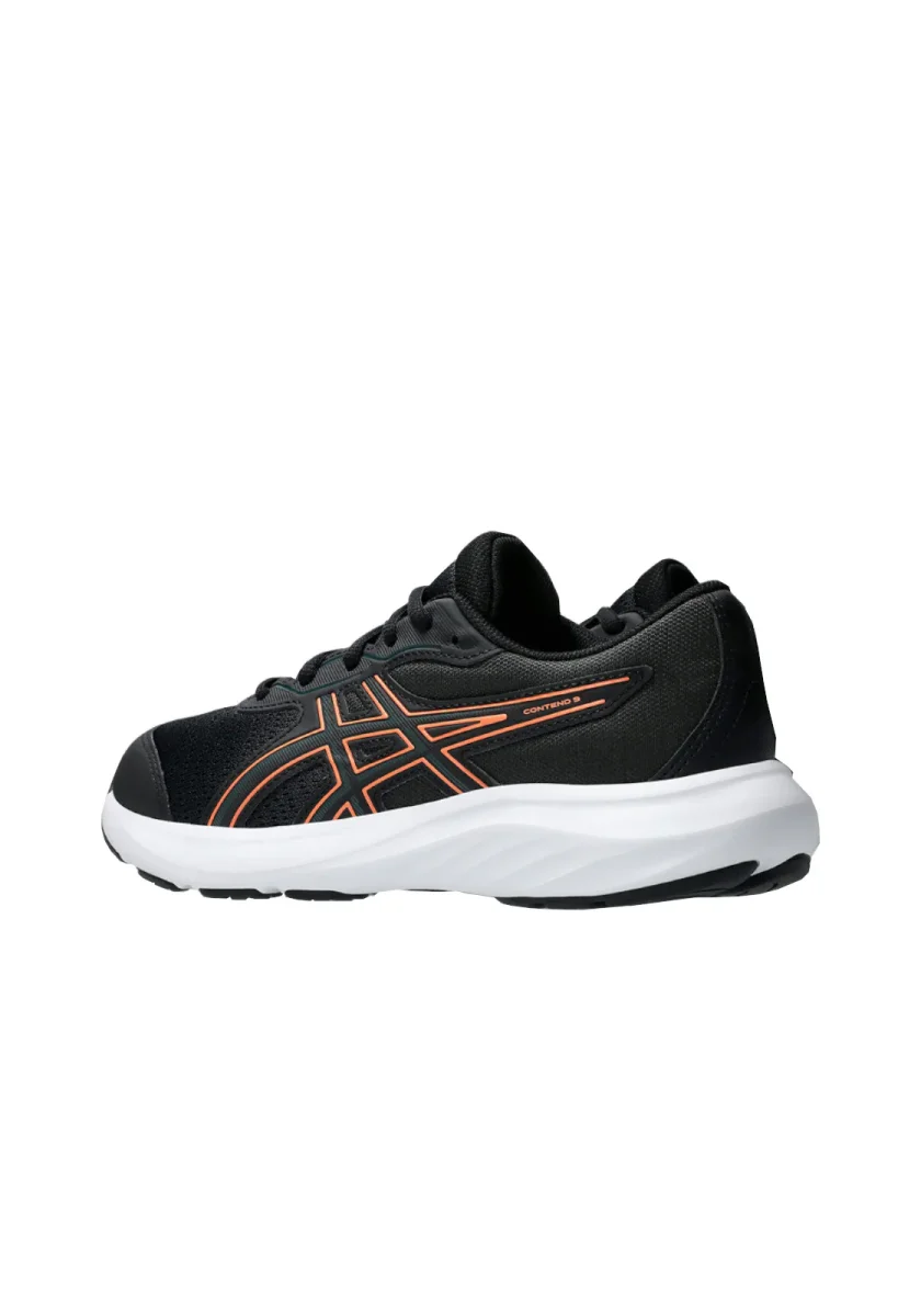 La scarpa Contend 9 presenta dettagli come il rinforzo sulla punta, le cuciture in gomma sulla punta e la suola in gomma piena aumentano la durata e la longevità della scarpa.