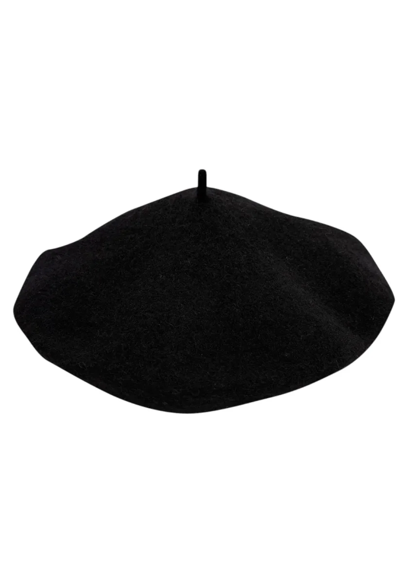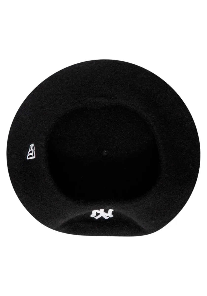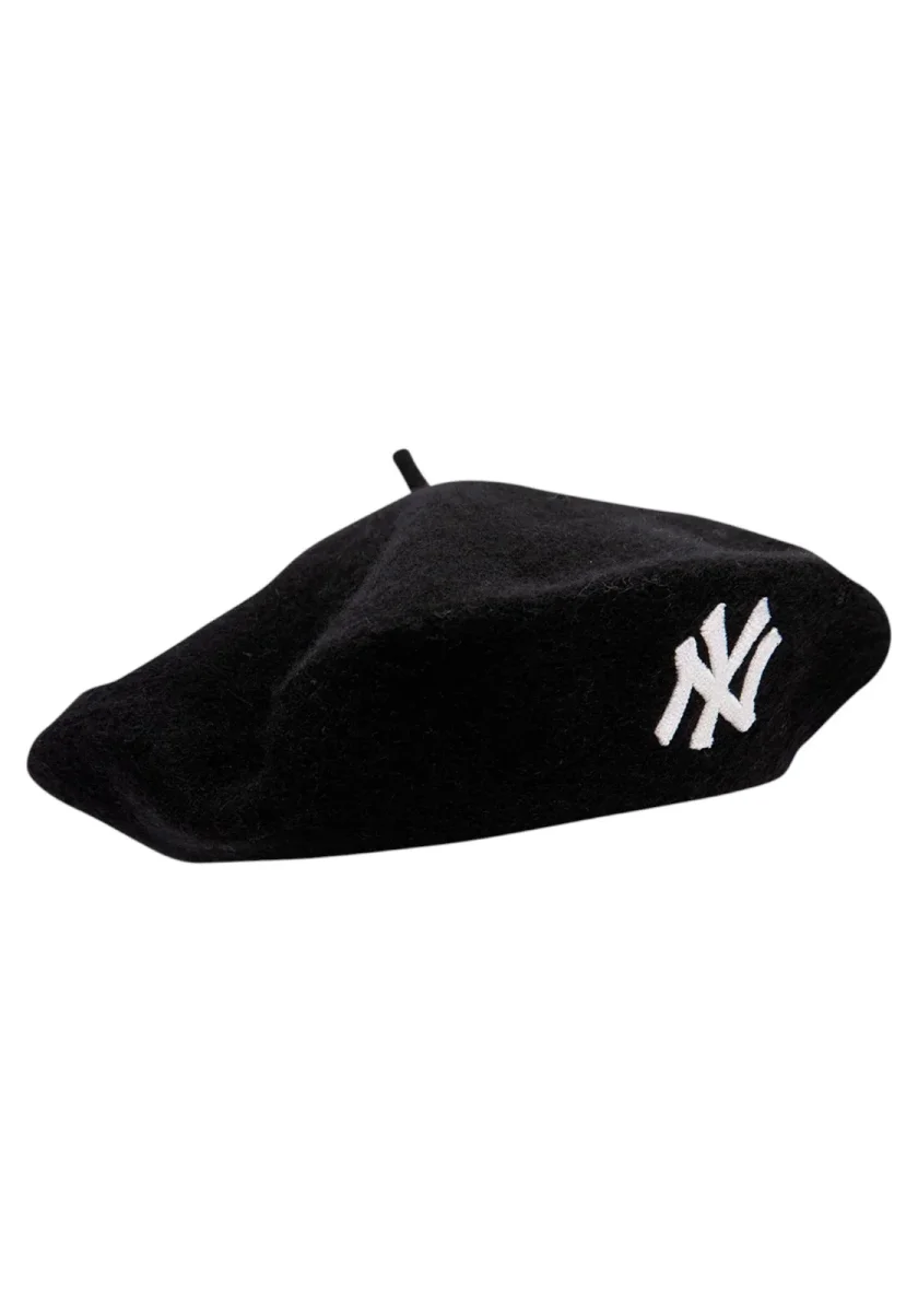 Basco unisex in feltro/lana nero con logo NY ricamato a contrasto. Morbido e caldo, taglia unica, ideale per look streetwear e casual in ogni stagione.