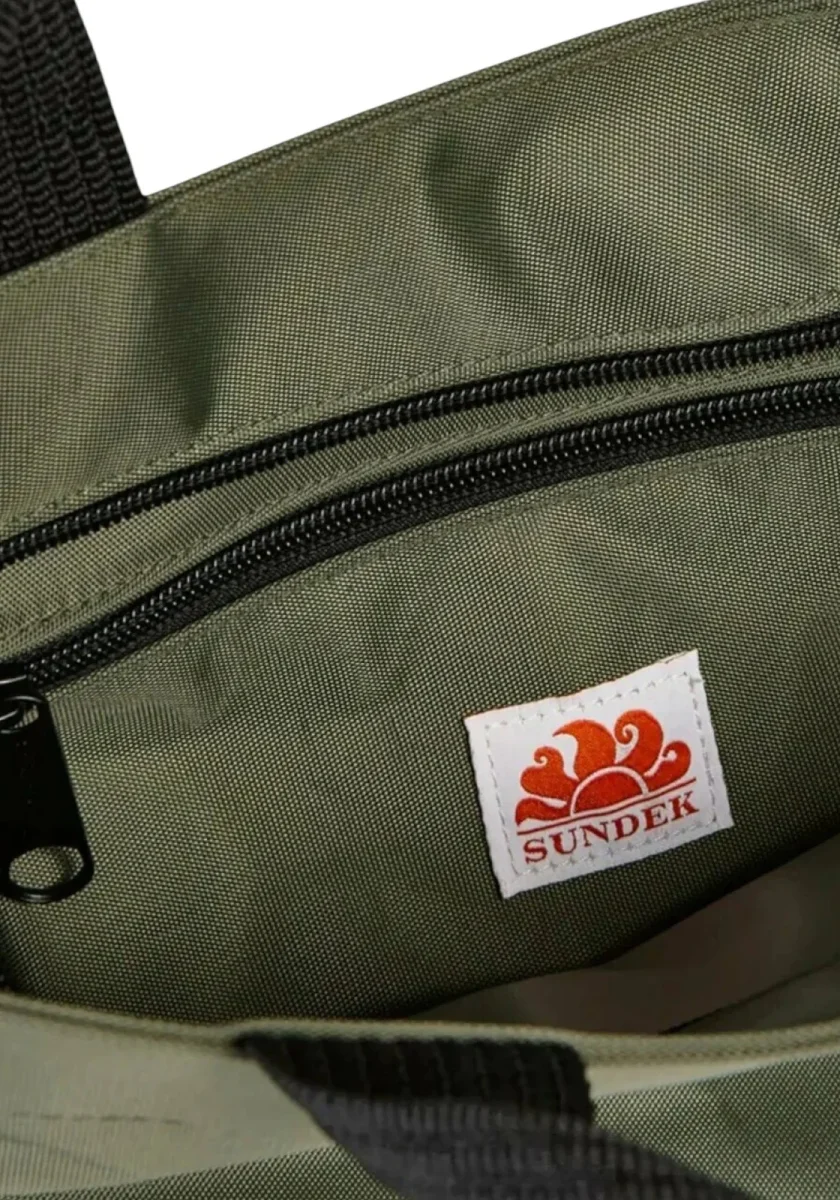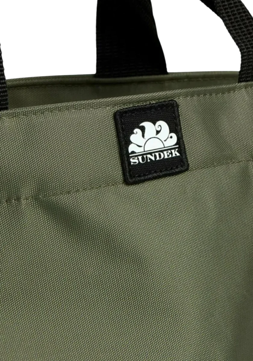 Borsa mare in nylon con logo frontale, doppio manico e chiusura centrale con zip, interni sfoderati con la presenza di una tasca multiuso.