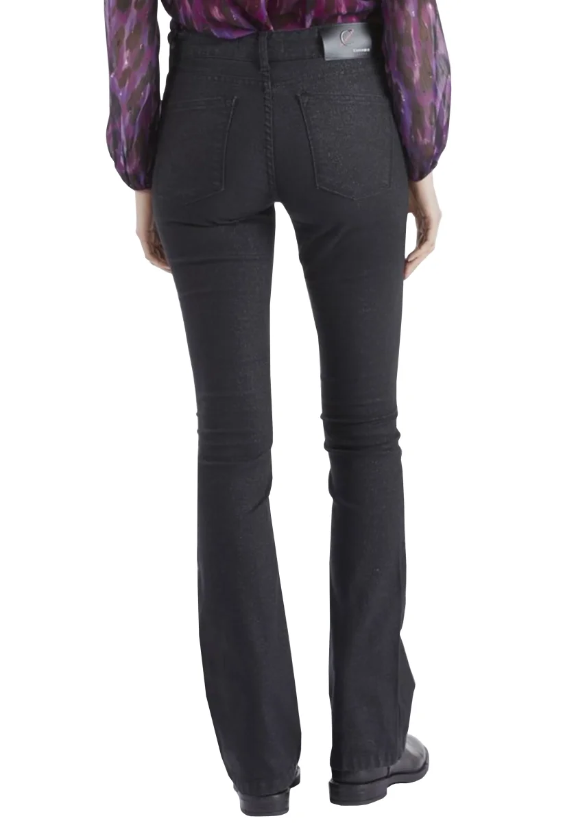 superstretch con strass in tono. Prezioso bottone gioello decora il davanti