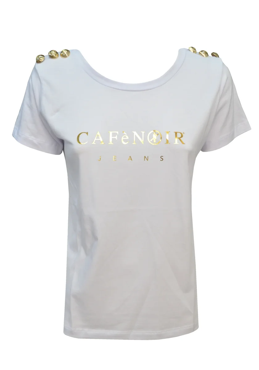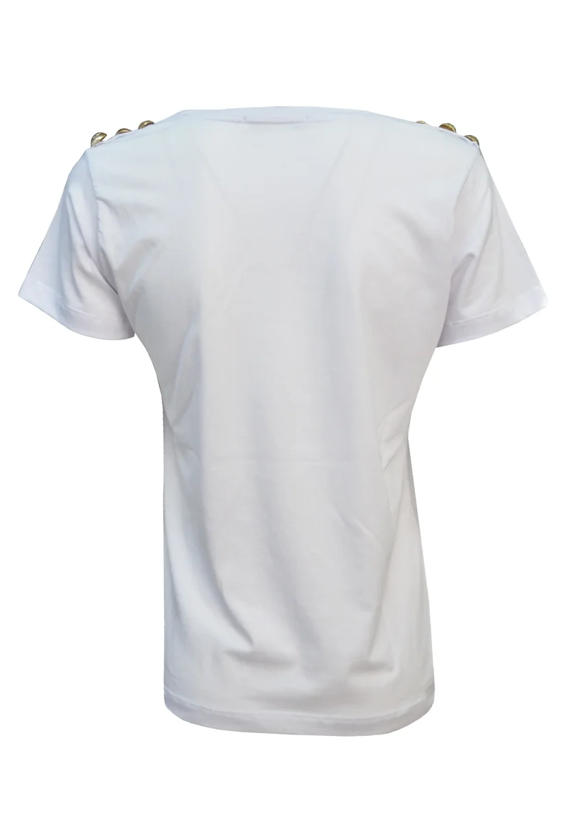 T-shirt con stampa Logo e bottoni oro