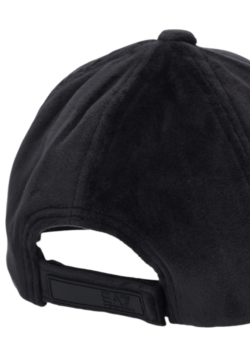 Cappello baseball realizzato in morbido e confortevole velluto. Femminile e versatile, si caratterizza per il ricamo logo EA7 Emporio Armani frontale e patch gommato con logo EA7 sul retro.