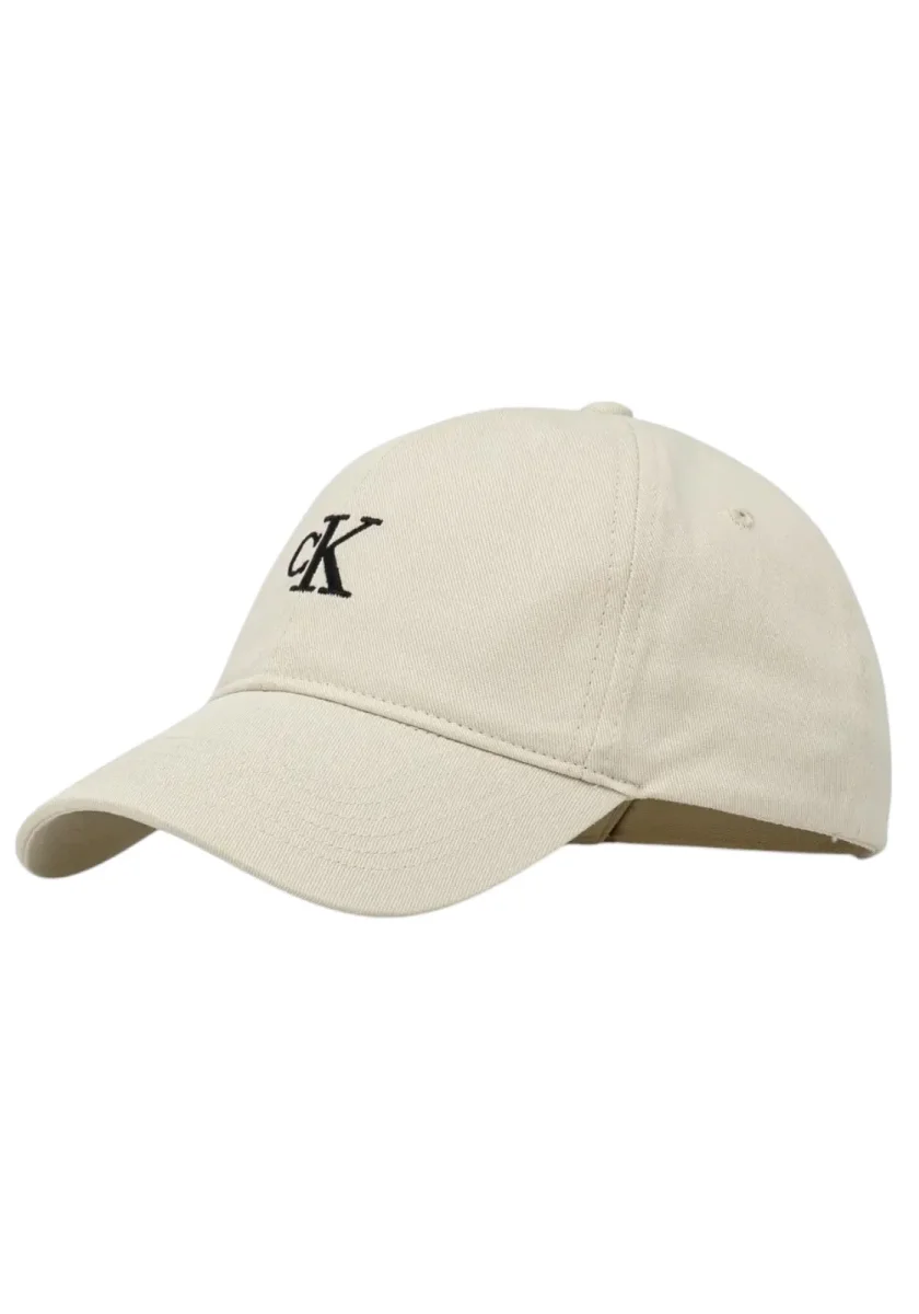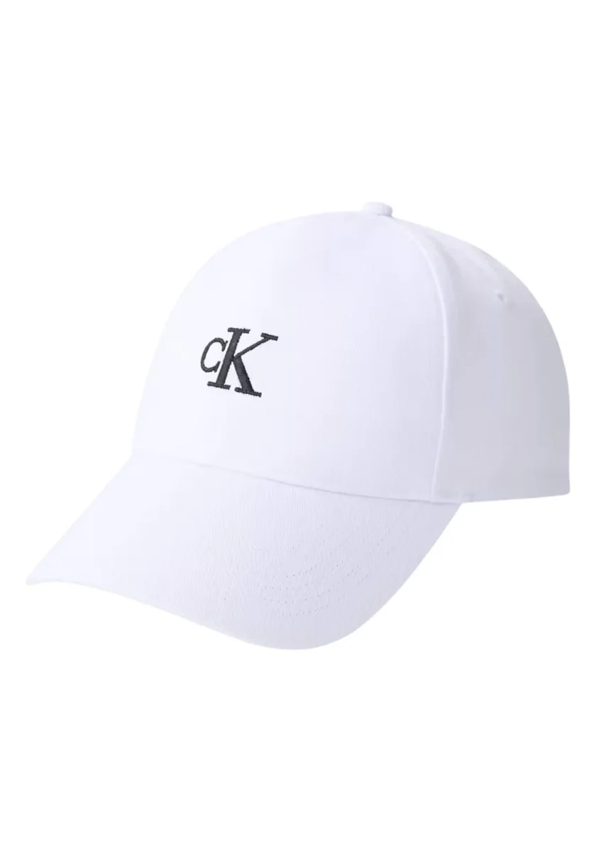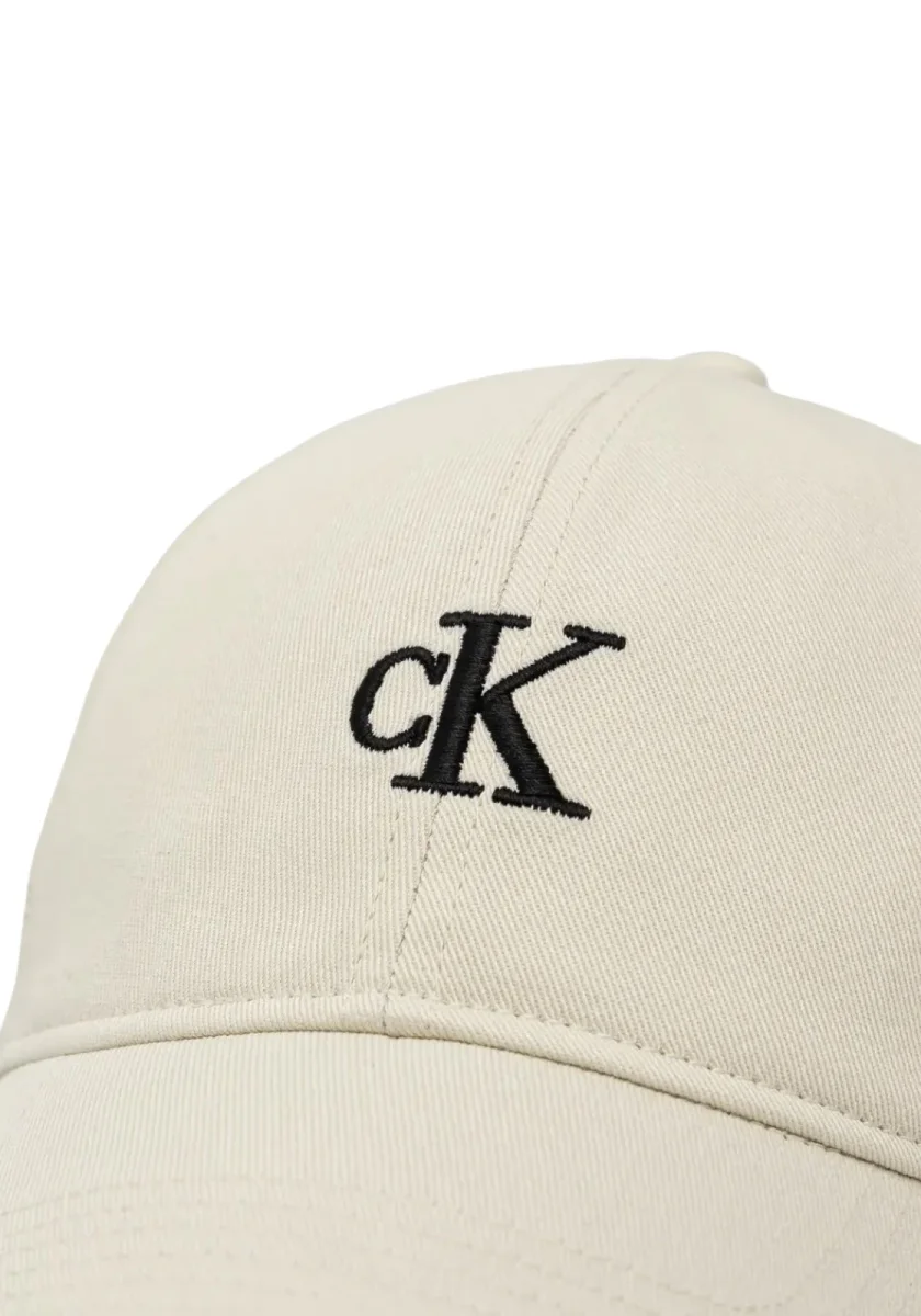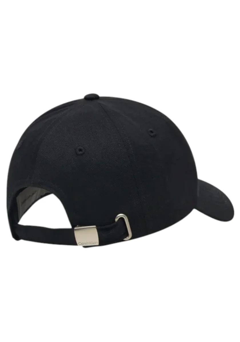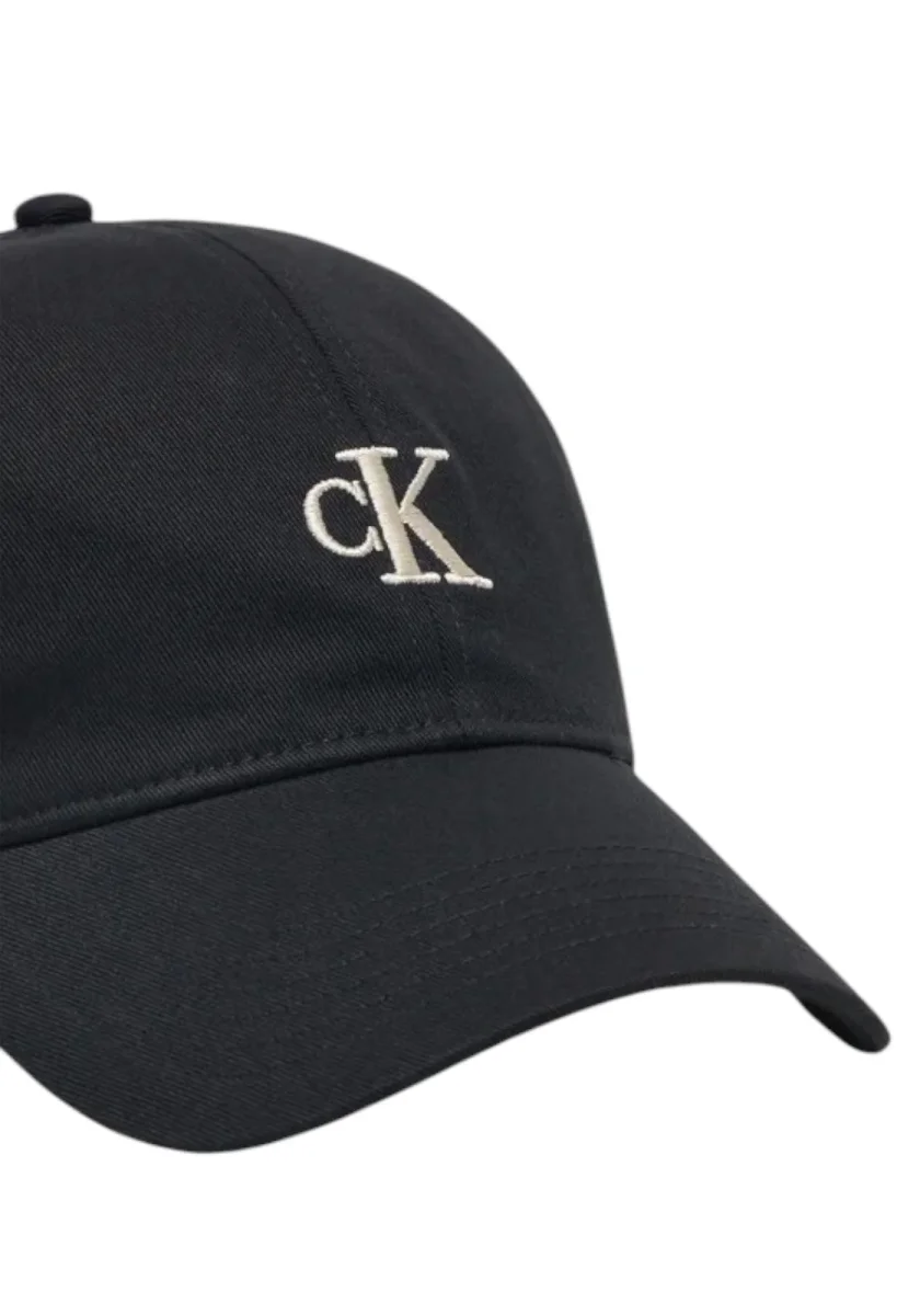 Cappellino Calvin Klein nero con visiera curva e logo -CK- ricamato in contrasto sul davanti. Design essenziale e versatile, ideale per un look casual e sportivo.