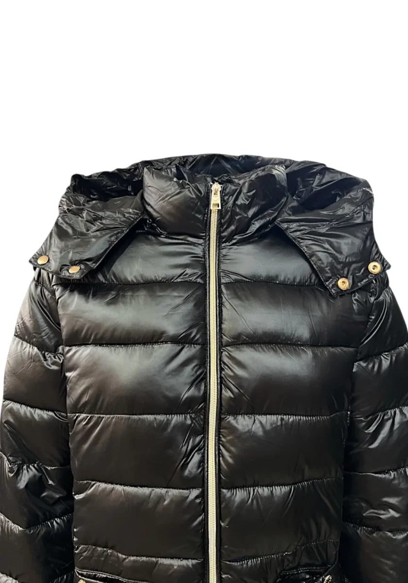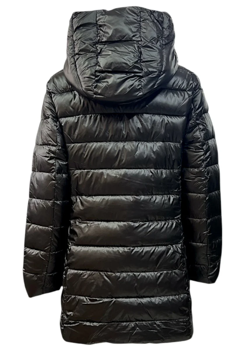 Piumino avvitato lungo al ginocchio realizzato in nylon effetto cangiante. il cappuccio staccabile e il fitting regolare rendono questo capo perfetto per uno stile casual e dinamico.