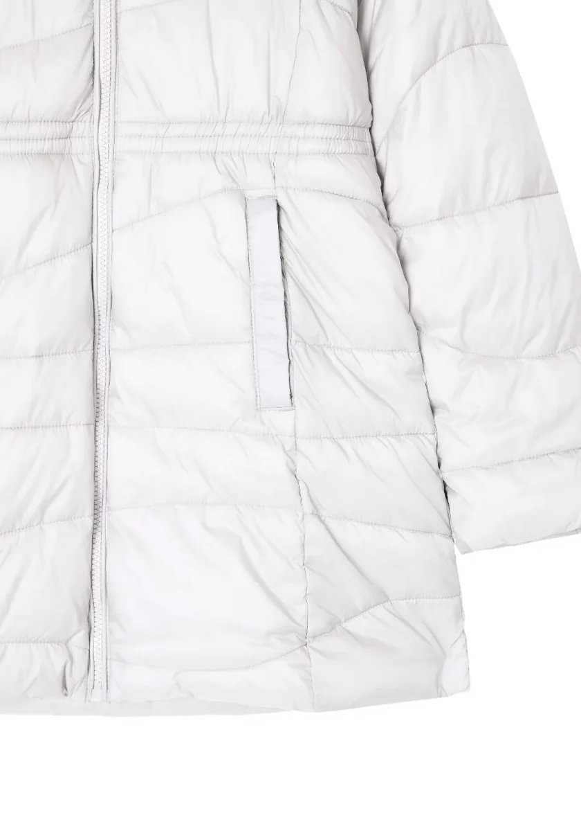 Caban con cappuccio realizzato in nylon e provvisto di calda imbottitura. Il modello si distingue per il motivo impunture a righe orizzontali e per la personalizzazione con logo patch EA7 sul petto. Un capo perfetto per look sportivi, dalla vestibilità confortevole, pensato per completare il guardaroba delle più piccole.