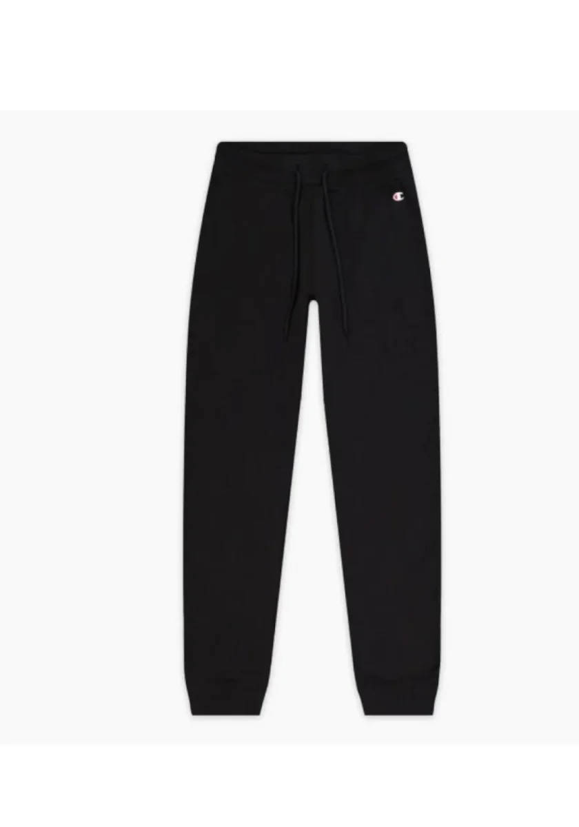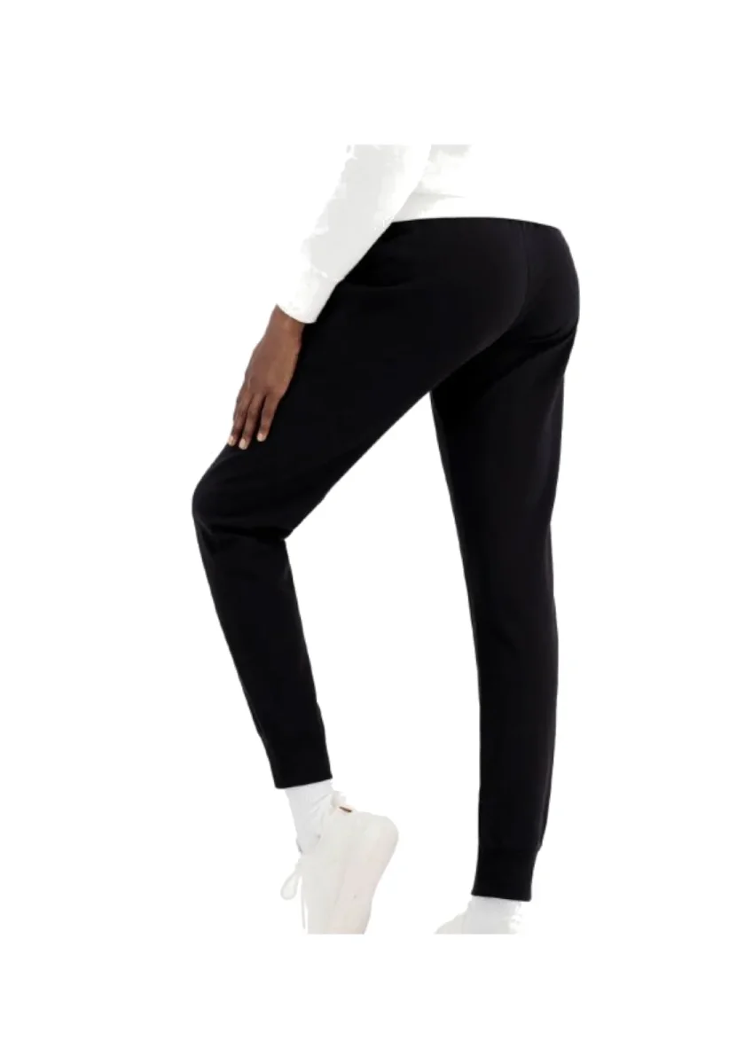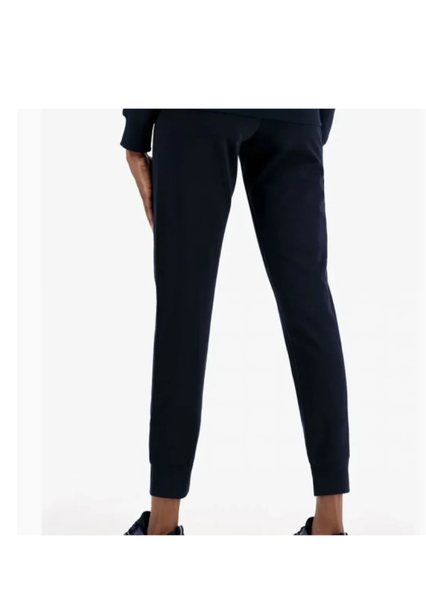 Pantalone donna nero con logo ricamato a contrasto blu, rosso e bianco.