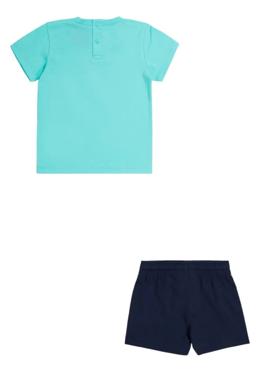 Questo set per bambini firmato Champion è perfetto per il comfort e lo stile quotidiano. La t-shirt in cotone celeste presenta il logo Champion stampato sul petto e un dettaglio con bottoni a pressione sulla parte posteriore per una facile vestibilità. I pantaloncini abbinati, in blu navy, offrono un design sportivo con vita elasticizzata e l’iconico logo Champion ricamato sulla gamba sinistra. Ideale per il gioco e il tempo libero, questo set unisce praticità e tendenza in un look casual e alla moda.