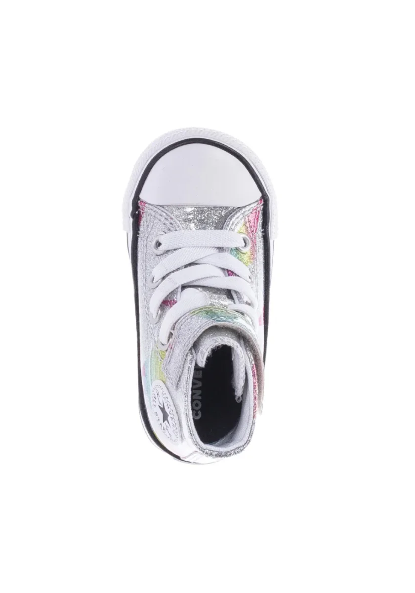 Converse scarpa sneakers da bambina glitterata con laccio elastico e velcro A04739C argento-bianco
