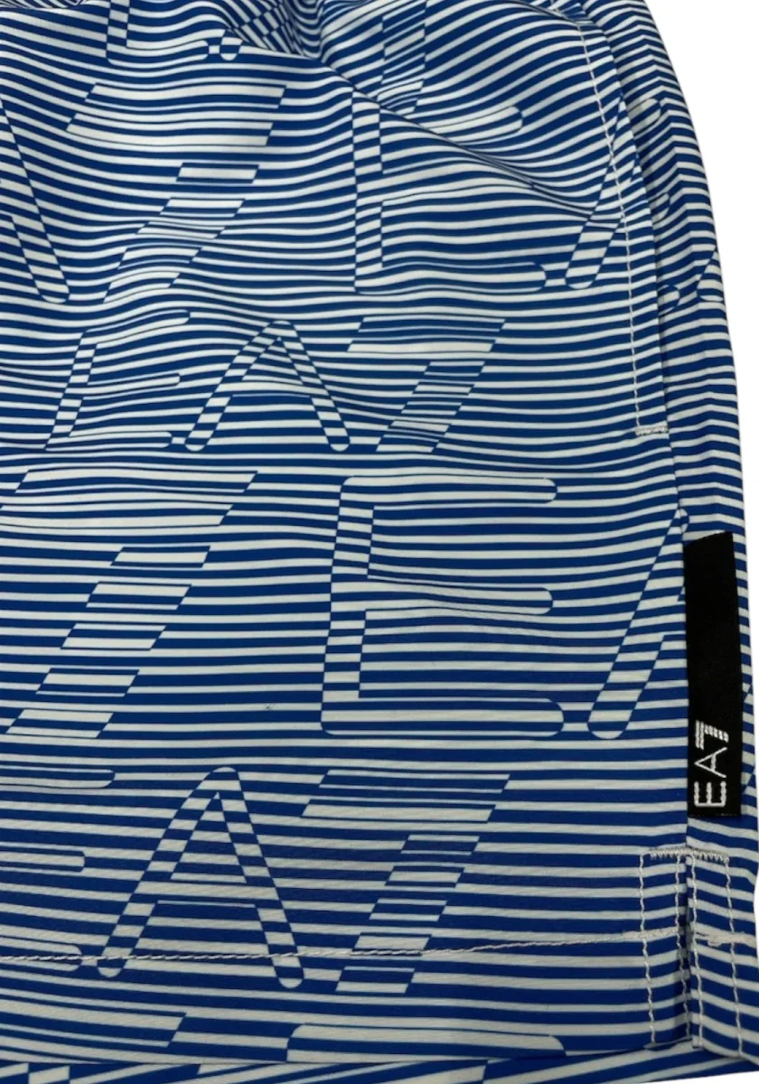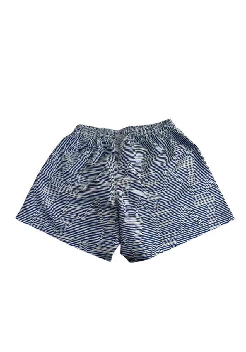 Costume modello shorts con coulisse in vita. Il capo presenta pratiche tasche laterali e fantasia con fitta stampa logo all over.