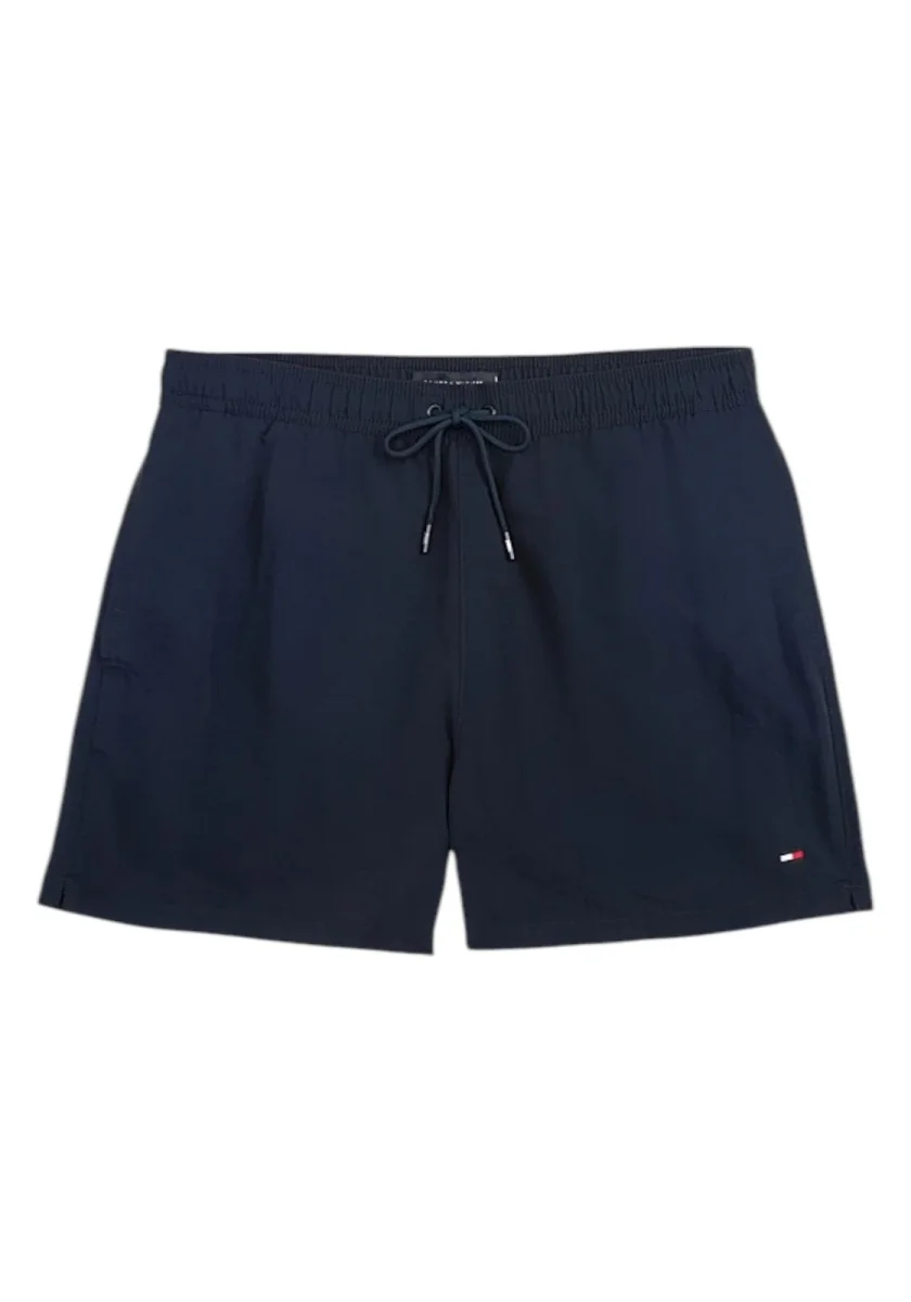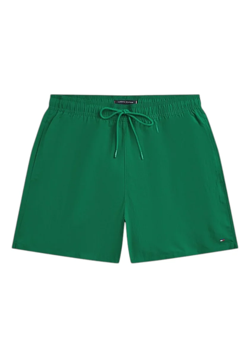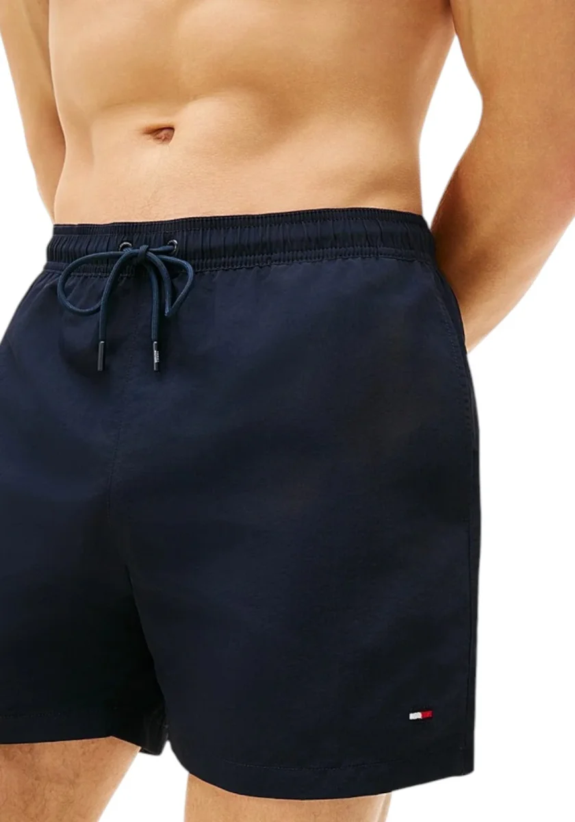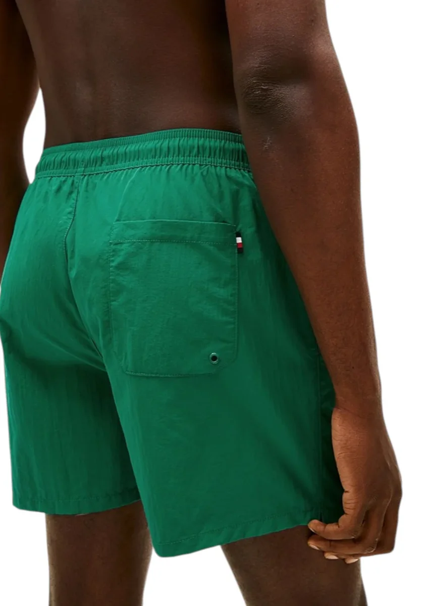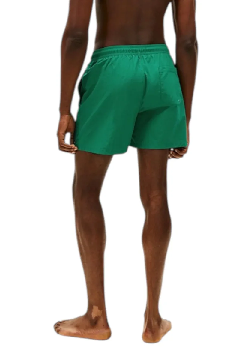 Il classico costume shorts di media lunghezza, completo di comodi lacci in vita e tasca sul retro, è il capo ideale per un look intramontabile a bordo piscina.