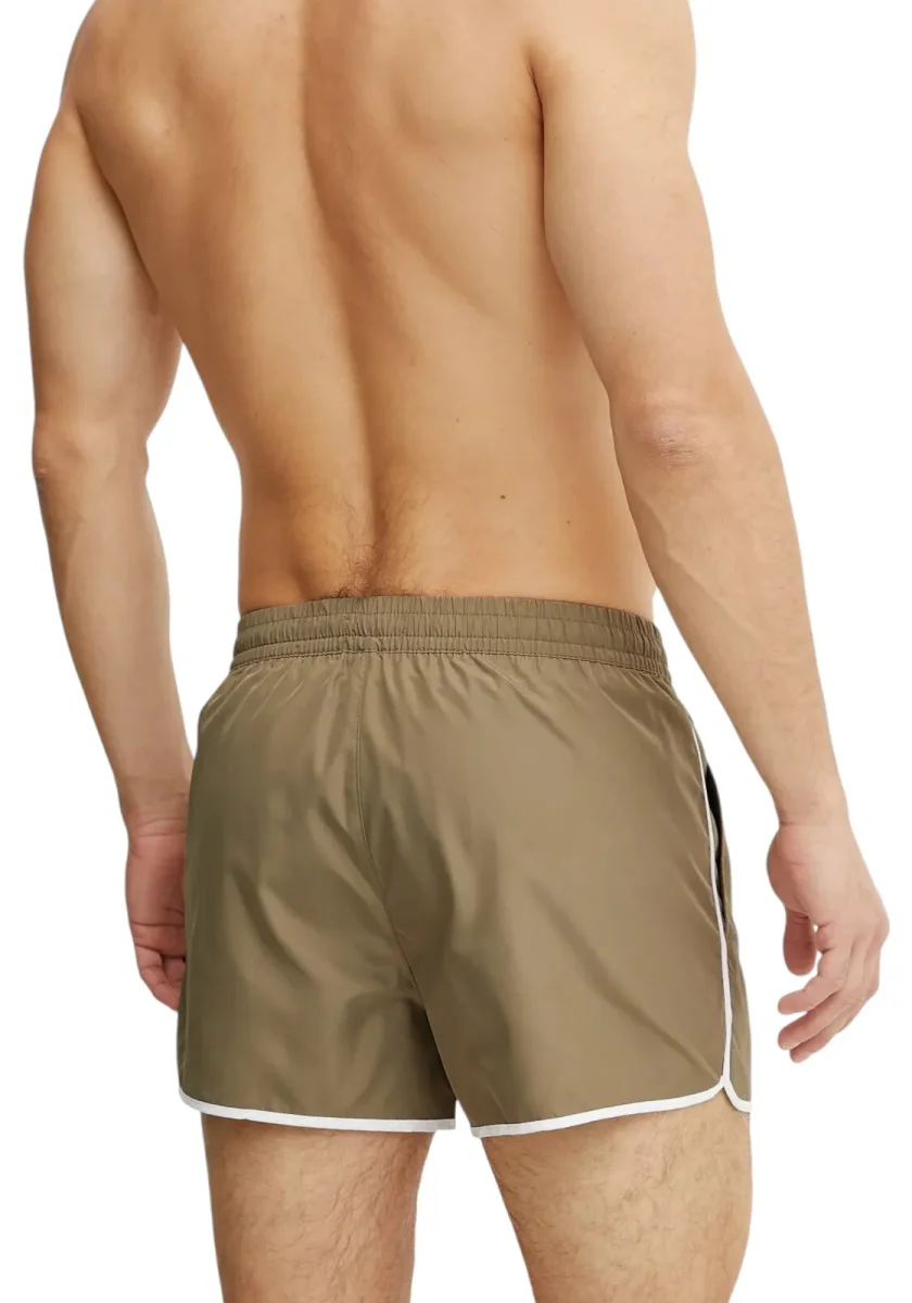 Questi pantaloncini da bagno sono realizzati al 100% in tessuto di poliestere biologico, escluse le finiture. Il poliestere riciclato è stato ottenuto dalla rielaborazione di materiali esistenti.
