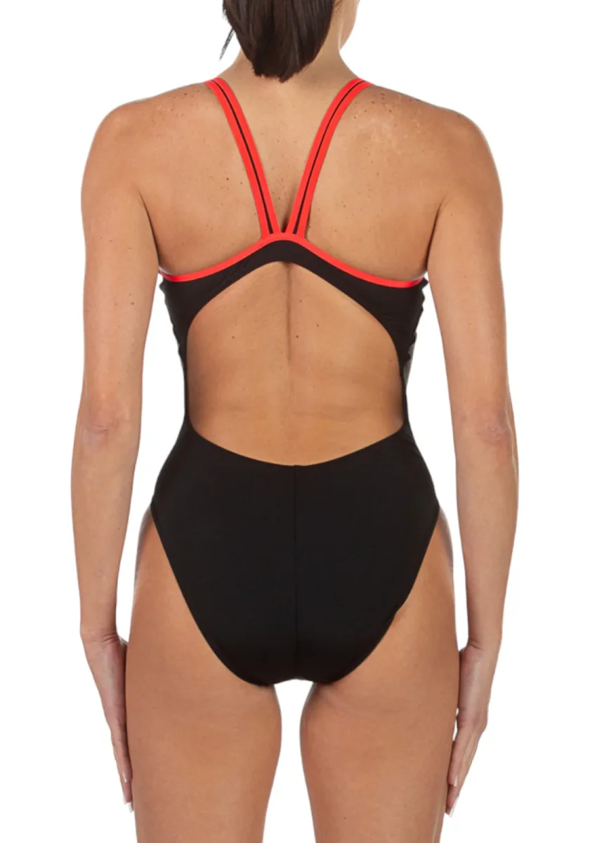 Costume Aquarapid donna intero ideale per la piscina, il training giornaliero ed il nuoto amatoriale. Una dinamica stampa digitale con motivi geometrici ripetuti crea giochi optical in bianco e nero donando un senso di movimento ed energia. Fronte e retro profilati con collaretto in acceso colore “psyco red” sottolineano la silhouette, conferendo a questo modello della serie ENERGY un look originale e decisamente sportivo.Realizzato in DEFENDER-ECO innovativo tessuto in poliestere riciclato, altamente resistente al cloro, mantiene forma e colori inalterati nel tempo, ideale anche per i lunghi allenamenti. Pregiata lavorazione interna con una morbida fodera e con elastico sottoseno, Invisible Support, per un perfetto sostegno. Le spalline con una tenuta sicura mantengono libere le scapole durante la nuotata. Retro Skill Back con oblò ampio. La sgambatura con copertura media e vestibilità classica garantisce una tenuta ottimale.