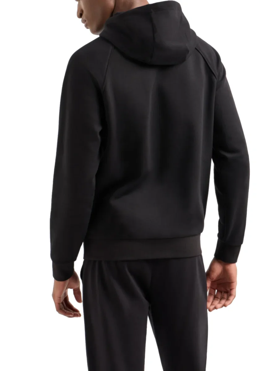 Felpa da uomo EA7, zip intera con cappuccio e coulisse, tasche laterali, piccolo logo sul petto e sulla manica destra