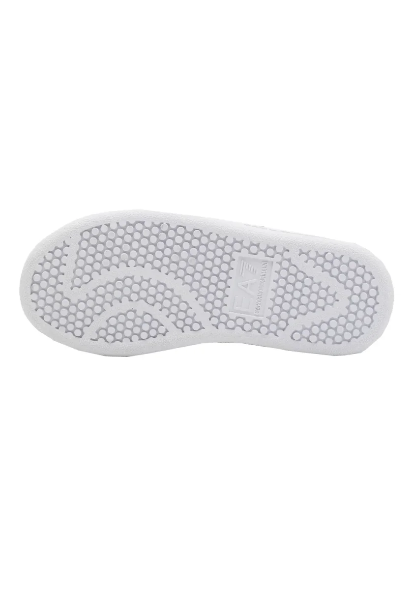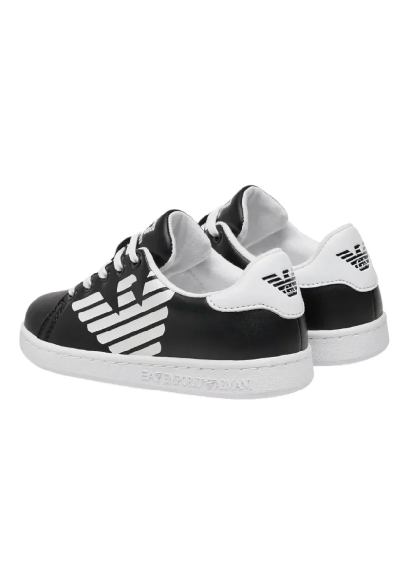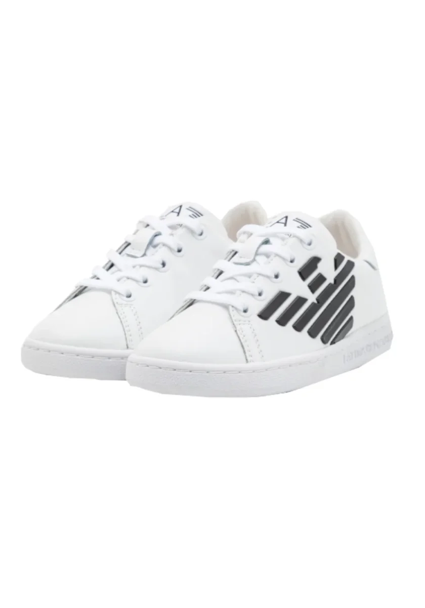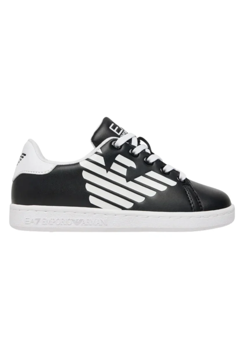 Sneakers basse EA7 da bambino in pelle con logo laterale bianco-nere.