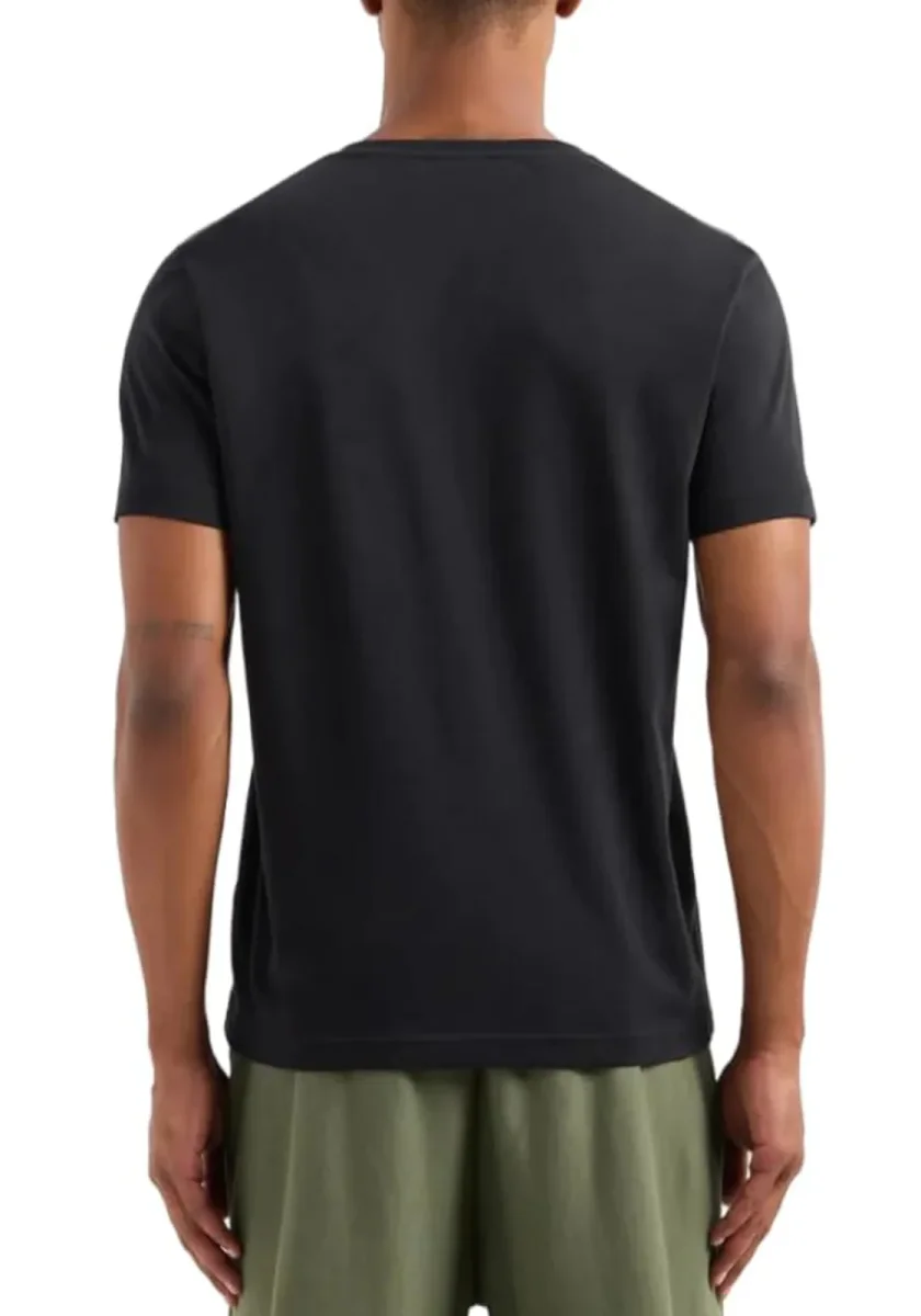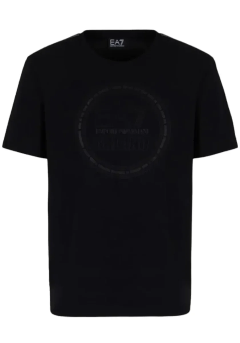 Questo modello a maniche corte è personalizzato dal logo EA7 con effetto gommato applicato sul petto, incorniciato dalla storia del brand, e dal motivo delle sette linee sulle maniche.