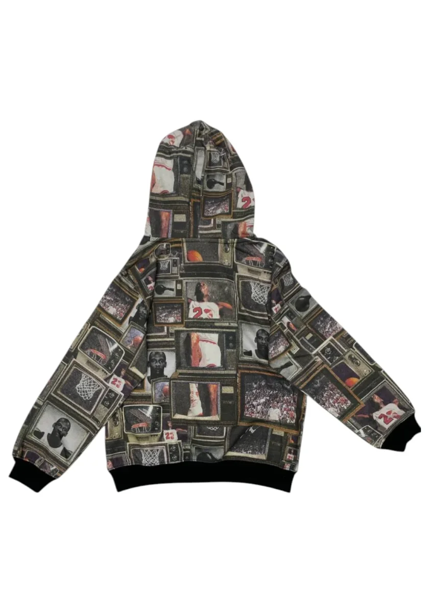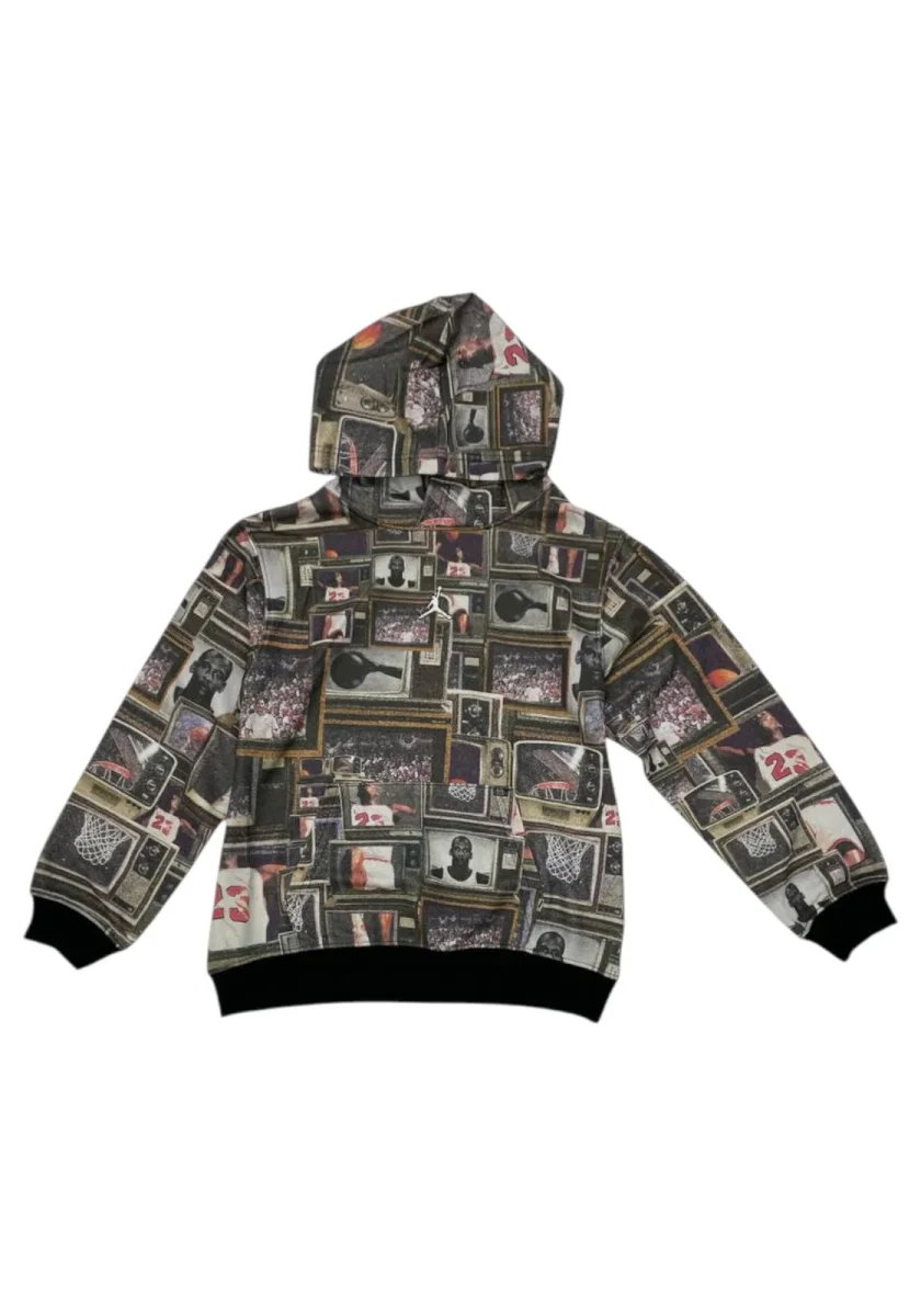 Felpa con cappuccio bimbo nike jordan, caratterizzata dalle storiche immagini ritraenti la leggenda Michael Jordan.