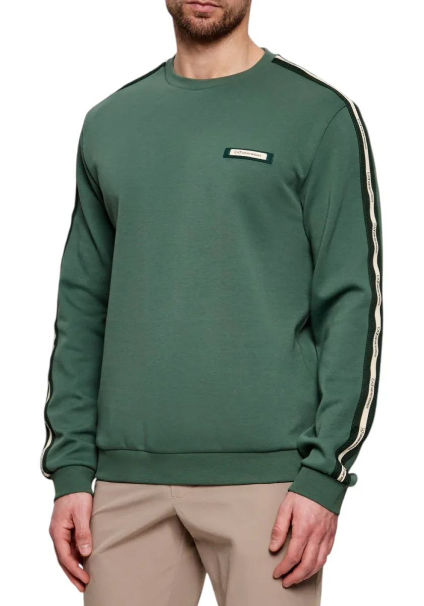 Felpa girocollo realizzata in morbido interlock di misto cotone. Il modello, è personalizzato dal logo tape EA7 a contrasto lungo i profili delle maniche e dal logo EA7 a contrasto sul petto., che richiama anche altri capi della collezione Logo Series