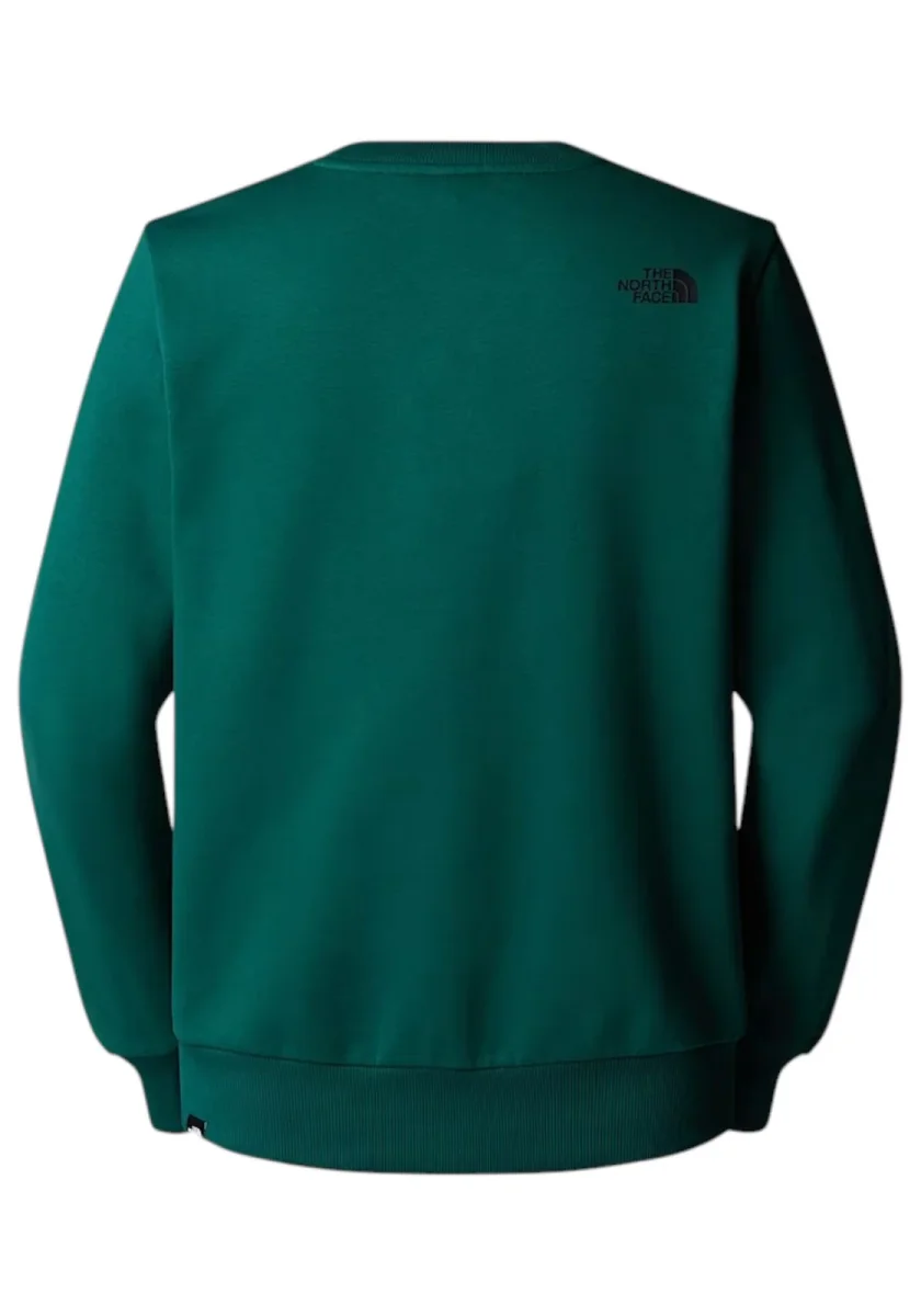 Felpa The North Face da uomo in verde petrolio, caratterizzata da girocollo, maniche lunghe e polsini a costine. Realizzata in morbido cotone, presenta il logo stampato sul petto e sulla schiena per un look casual e sportivo.