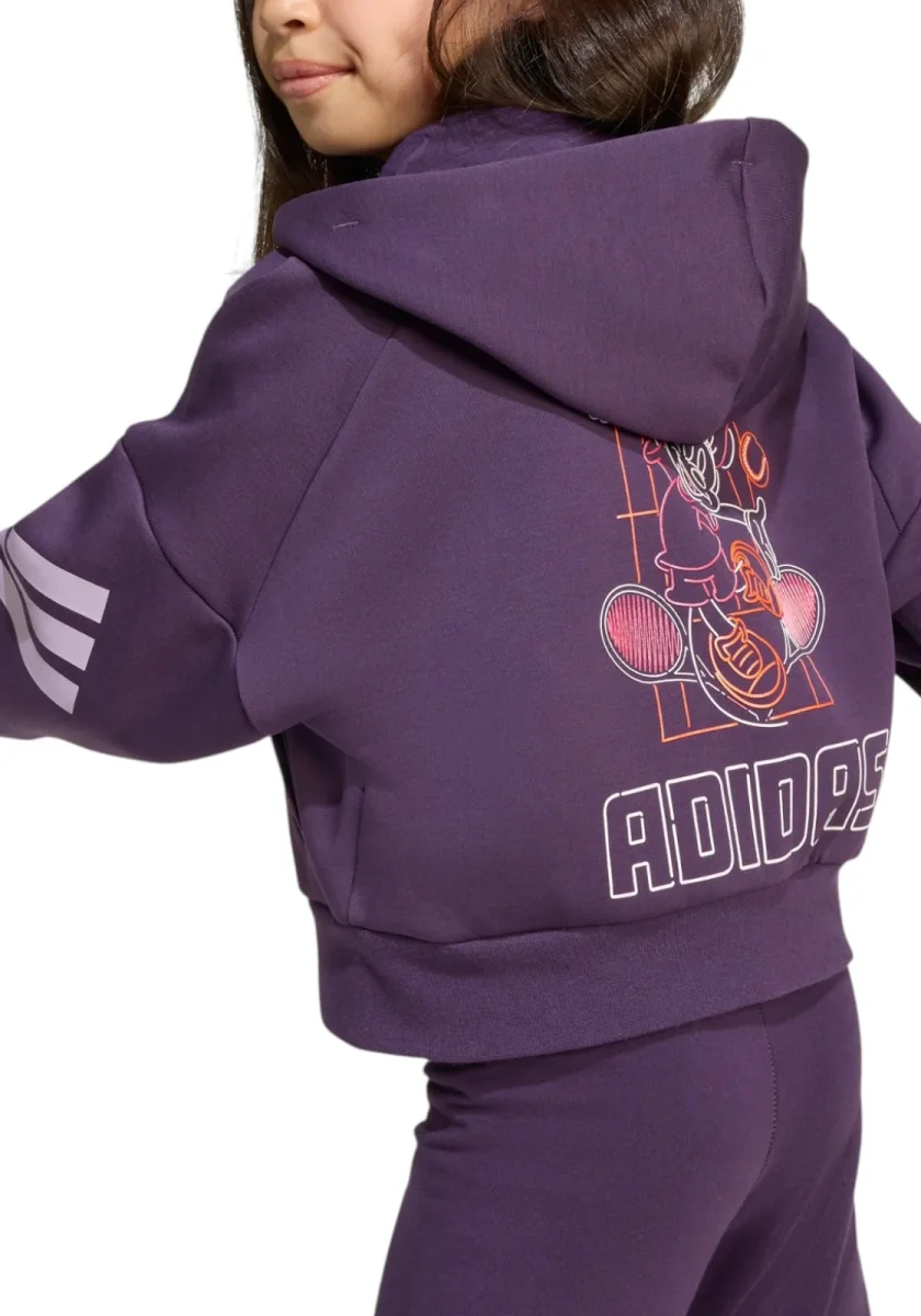 I bambini adoreranno la magia di questo top da allenamento adidas Disney. Realizzato in materiale morbido e accogliente con un ampio cappuccio e una zip sul davanti, offre una silhouette sportiva e femminile con una grande e divertente grafica Disney sulla schiena e le 3 Strisce adidas sulla parte inferiore delle maniche.