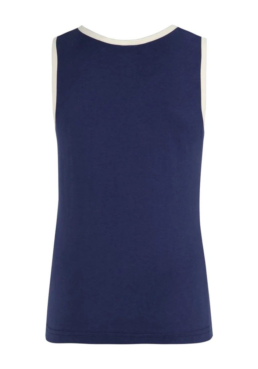 Top Fila Kids Thiendorf in cotone blu, con bretelle larghe, rifinitura dei bordi del collo e giro manica in tessuto di colore a contrasto, maxi logo frontale, etichetta patch logo sul fondo, vestibilità regolare.