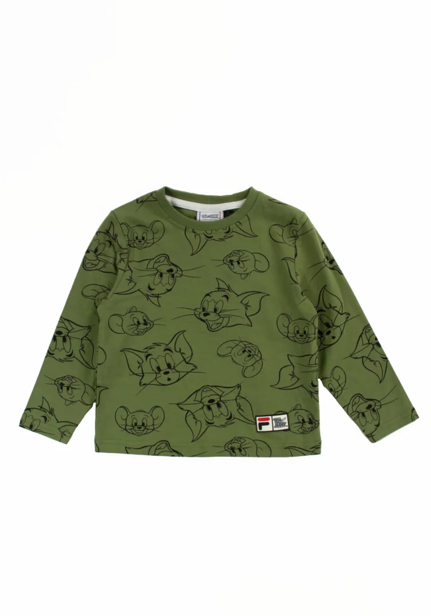 Girocollo a costine e stampa Tom e Jerry all over.