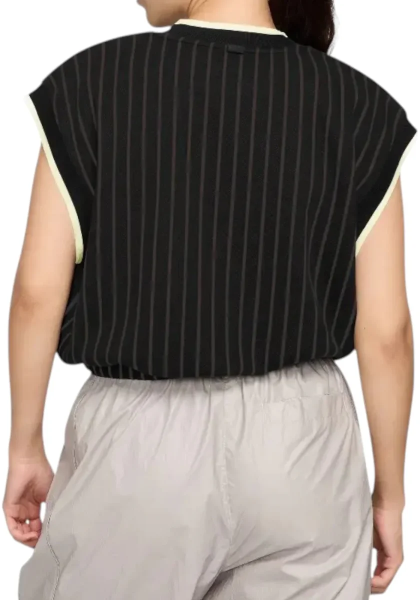 Questa canotta a righe ha una vestibilità ampia che si adatta alla vita, per un look che richiama lo stile vintage delle piste.
