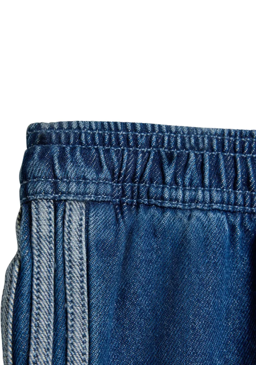 Questi joggers rendono omaggio alle loro radici atletiche con un Trefoil ricamato e le iconiche 3 strisce che corrono lungo le gambe. Ma grazie alla loro struttura in denim, sono pronti ad affrontare ogni urto e graffio dei piccoli avventurieri che devono ancora trovare il proprio ritmo.