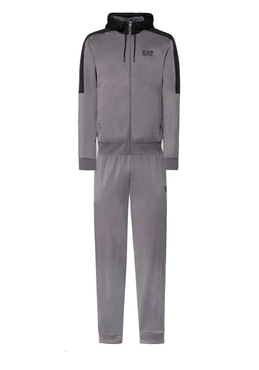 Tuta EA7 JERSEY TRACKSUIT colore grigio con dettagli neri, uomo.