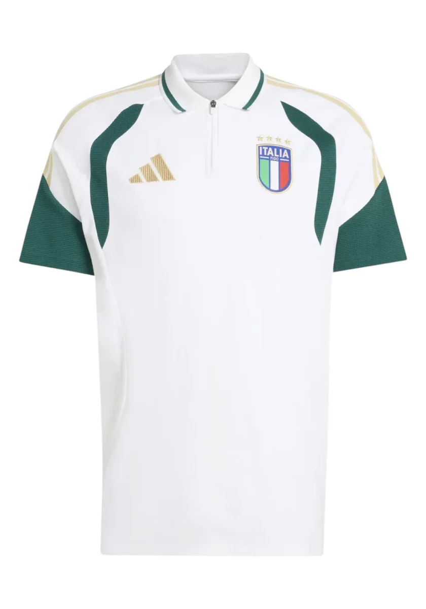 Design pulito in bianco con le iconiche tre strisce nere Adidas sulle spalle. Colletto classico con bottoni e vestibilità regolare. Perfetta per un look sportivo ma curato.