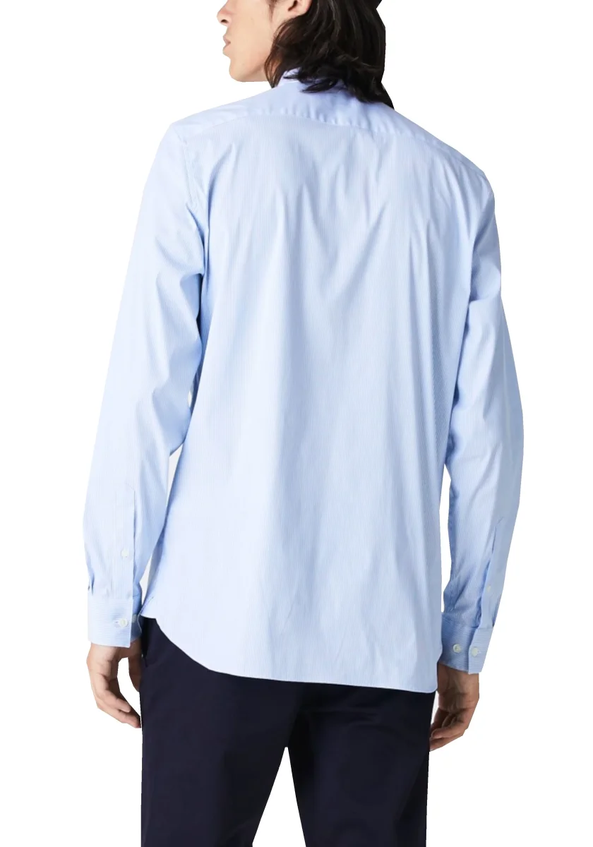 Comfort e modernità risplendono in questa camicia in cotone elasticizzato a righe.
