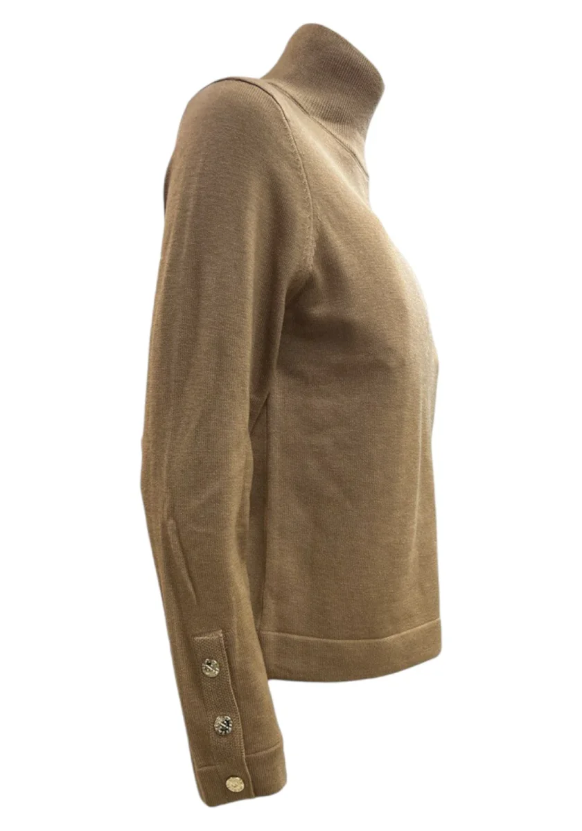Maglia a collo alto (lupetto) del marchio CafèNoir, realizzata in lana in colore cammello elegante. Vestibilità regular e design semplice, perfetta da indossare da sola o sotto un cappotto per un look raffinato e caldo.