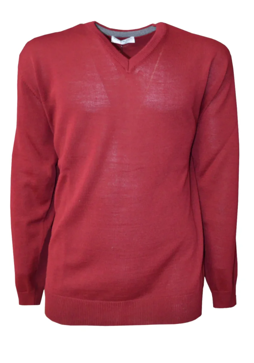 MAGLIONE V COL BORDEAUX realizzato in lana 100% Italiano, per la stagione 2/24 AUTUNNO INVERNO 2024/25.