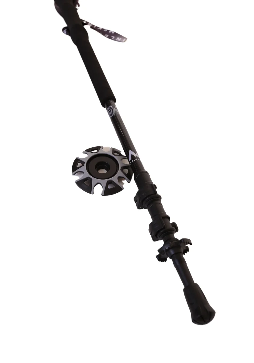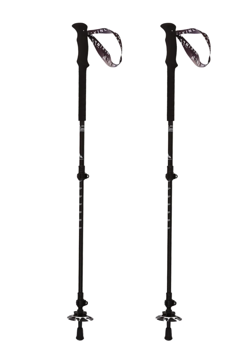 Bastoncini McKinley dotati di strap regolabili senza cuciture e impugnature in schiuma. Diametro delle aste 16 mm con punte in tungsteno.