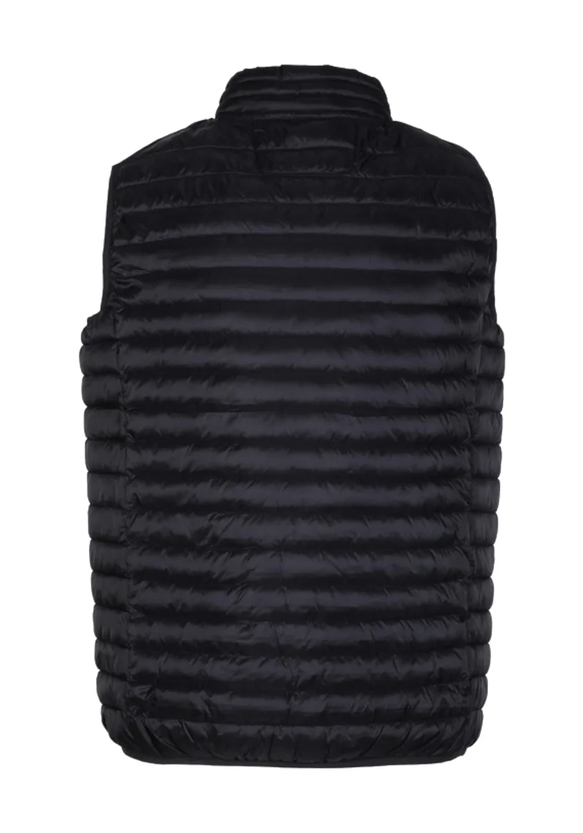 Gilet da uomo imbottito, chiusura con cerniera, effetto trapuntato, tasche frontali con zip, logo sul davanti, interno in contrasto colore, taschino extra interno.