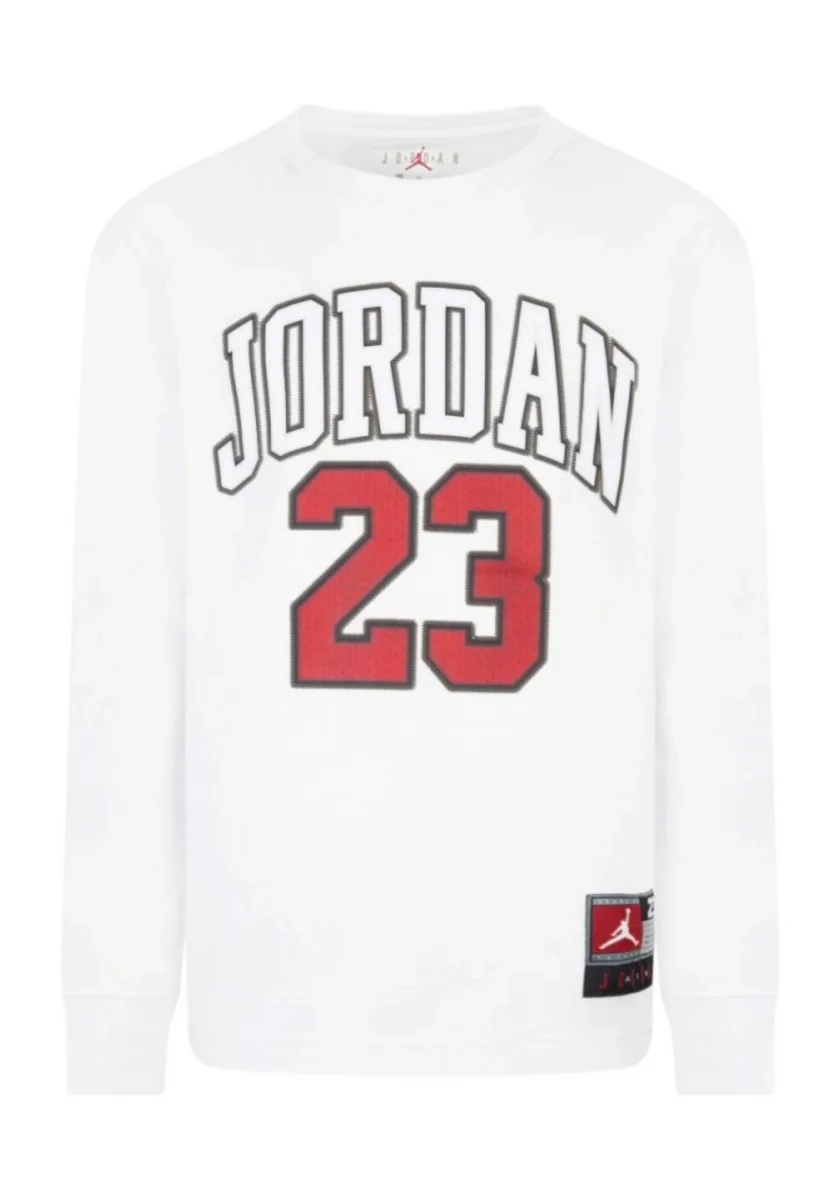 Realizzata in cotone leggero, con applicazioni ricamate, a manica lunga, ideale per la mezza stagione o come sotto felpa in inverno.