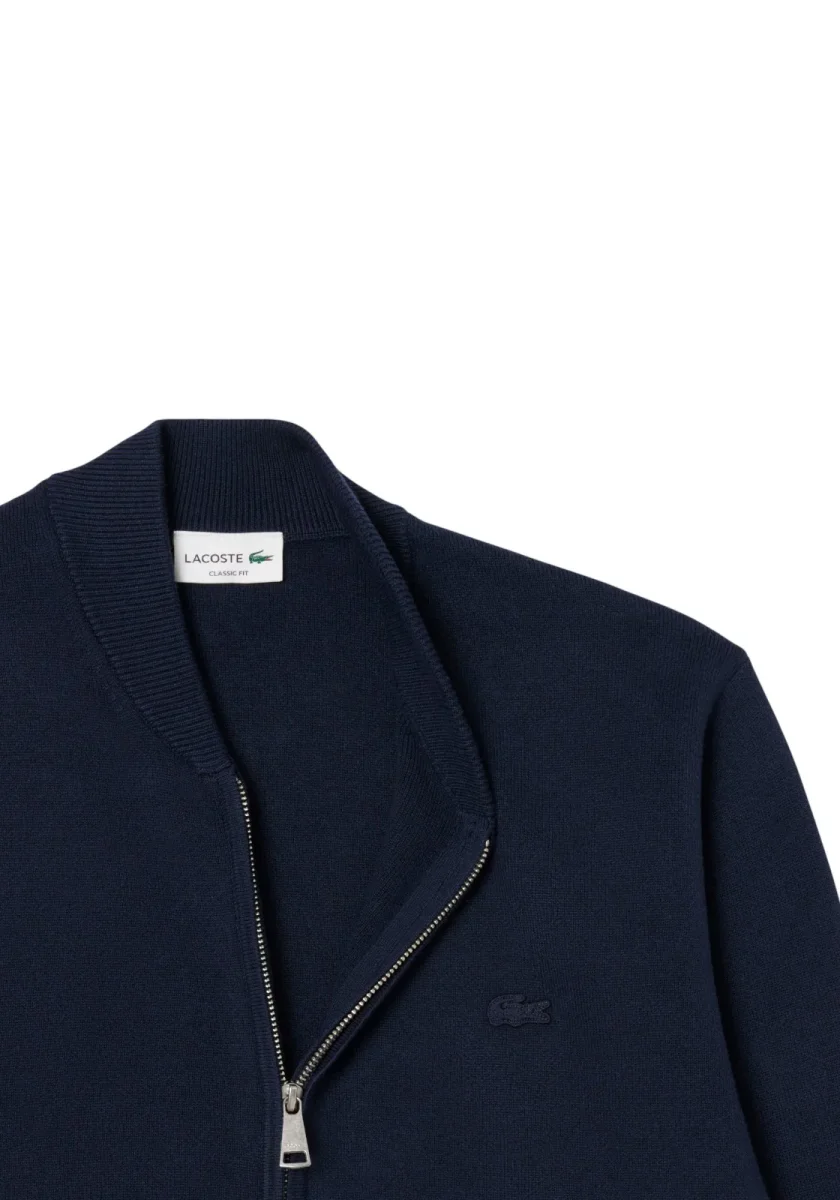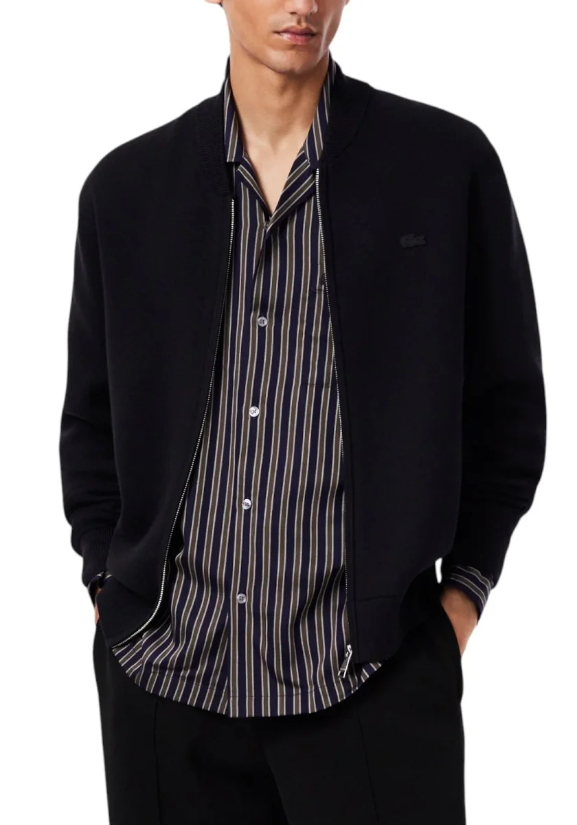 Questa rivisitazione del bomber Lacoste, un’icona di eleganza francese dal 1933, è realizzata in un morbido misto cotone e lana, provenienti da fonti rispettose del benessere animale. Il design propone una versione moderna del classico bomber, con un fit comodo, maniche ampie e una maglia finezza 14 di media pesantezza. Dettagli come coste su collo, polsini e orlo, la zip centrale con cursore metallico e il coccodrillo ricamato tono su tono sul petto aggiungono un tocco distintivo.