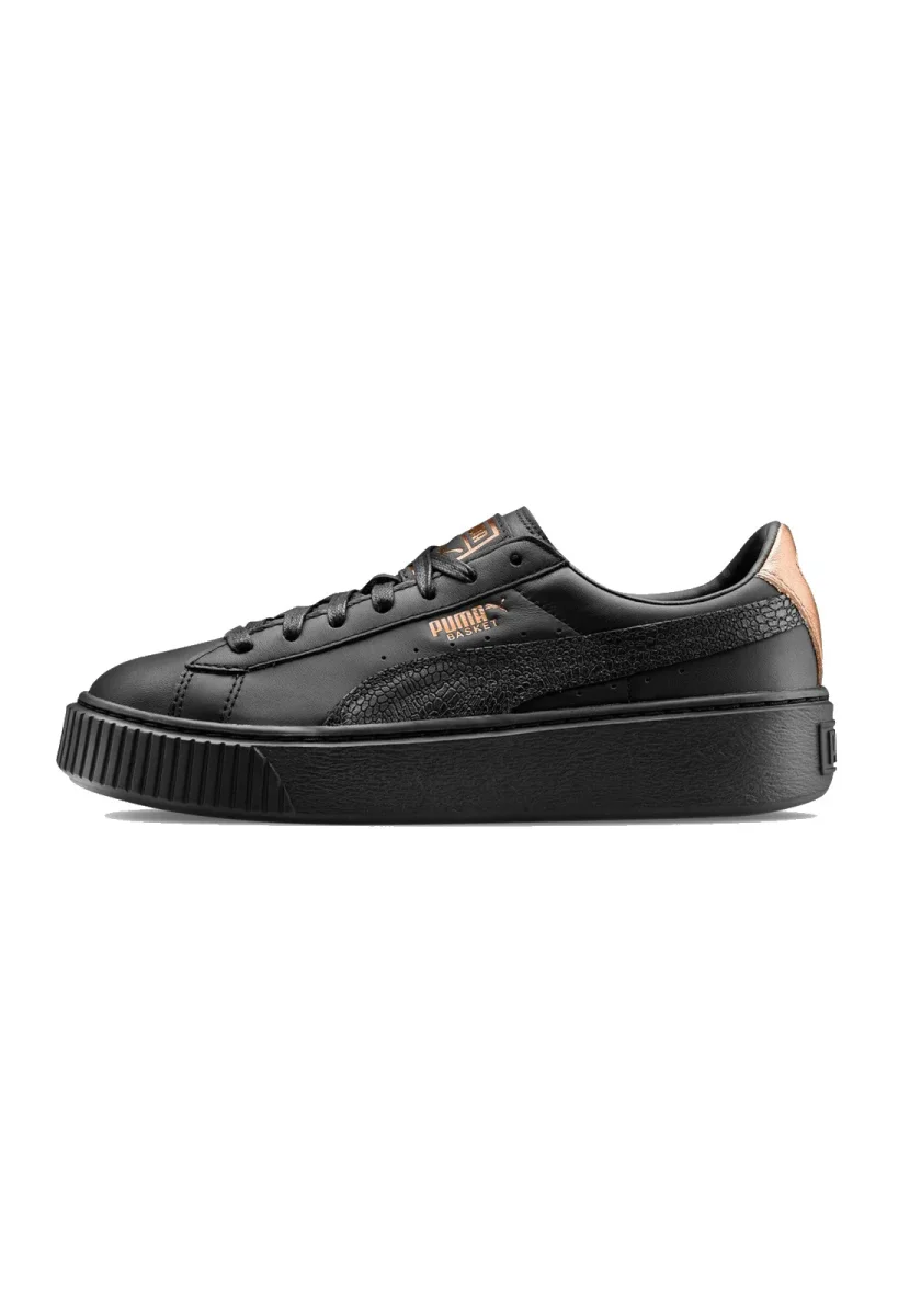 Le scarpe Puma Basket Platform Euphoria da donna hanno una tomaia in pelle, con dettagli bronzo.