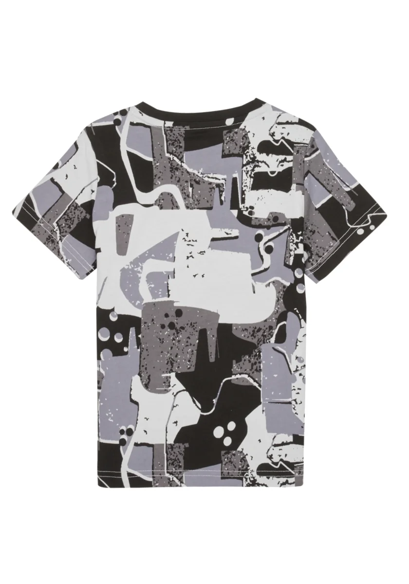 Questa maglietta con stampa ispirata ai graffiti prende l’immaginazione della street art e la combina con il classico abbigliamento casual per creare una moda che guarda al futuro.