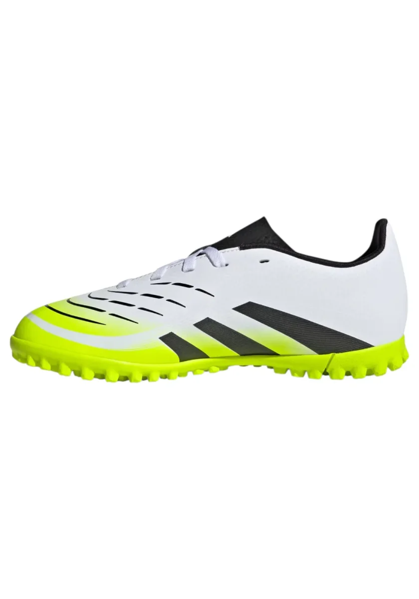 Scopri la differenza tra mirare a segnare e sapere che lo farai con le scarpe adidas Predator, create per fare gol. Queste scarpe da calcio Club junior hanno una tomaia sintetica rivestita con una texture Strikeprint aderente per un migliore controllo di palla. La suola in gomma con tacchetti è progettata per farti raggiungere le posizioni di tiro migliori sui campi in erba sintetica.