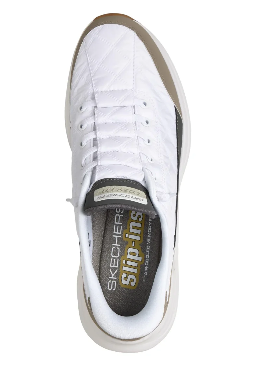 NO TIE FIT™ Avvolgi i tuoi piedi in un comfort senza sforzo indossando le Skechers Hands Free Slip-ins®: Contour Foam™ – Cozy Fit®. Progettate con il nostro Heel Pillow®, queste slip-on presentano una tomaia trapuntata Cozy Fit® e un rivestimento sintetico con lacci elastici annodati, un’intersuola ammortizzante Contour Foam™ e la nostra esclusiva soletta ammortizzata Skechers Air-Cooled Memory Foam®.